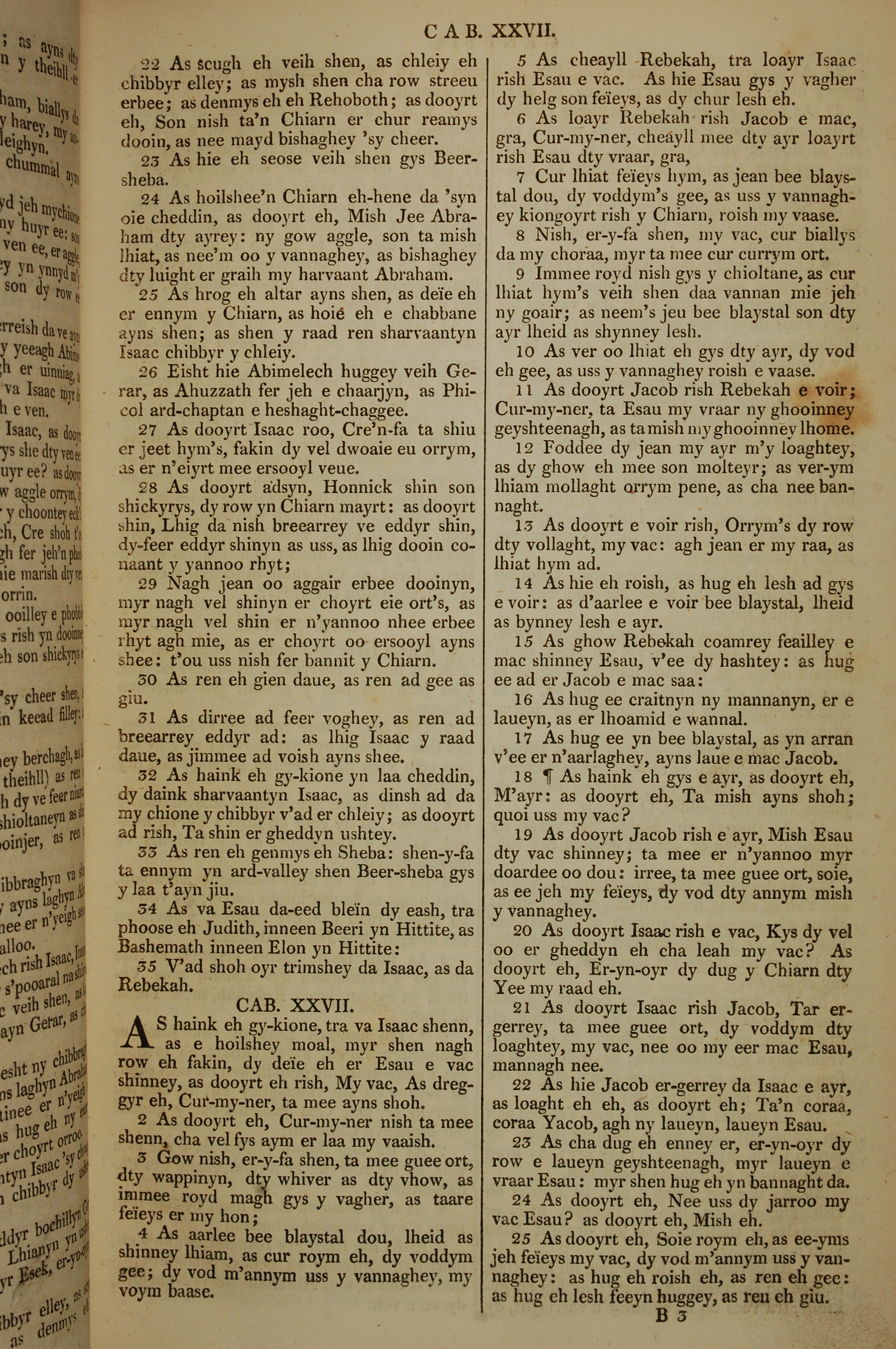 1819年曼島語聖經 創世記 26 章 22 節到 27 章 25 節