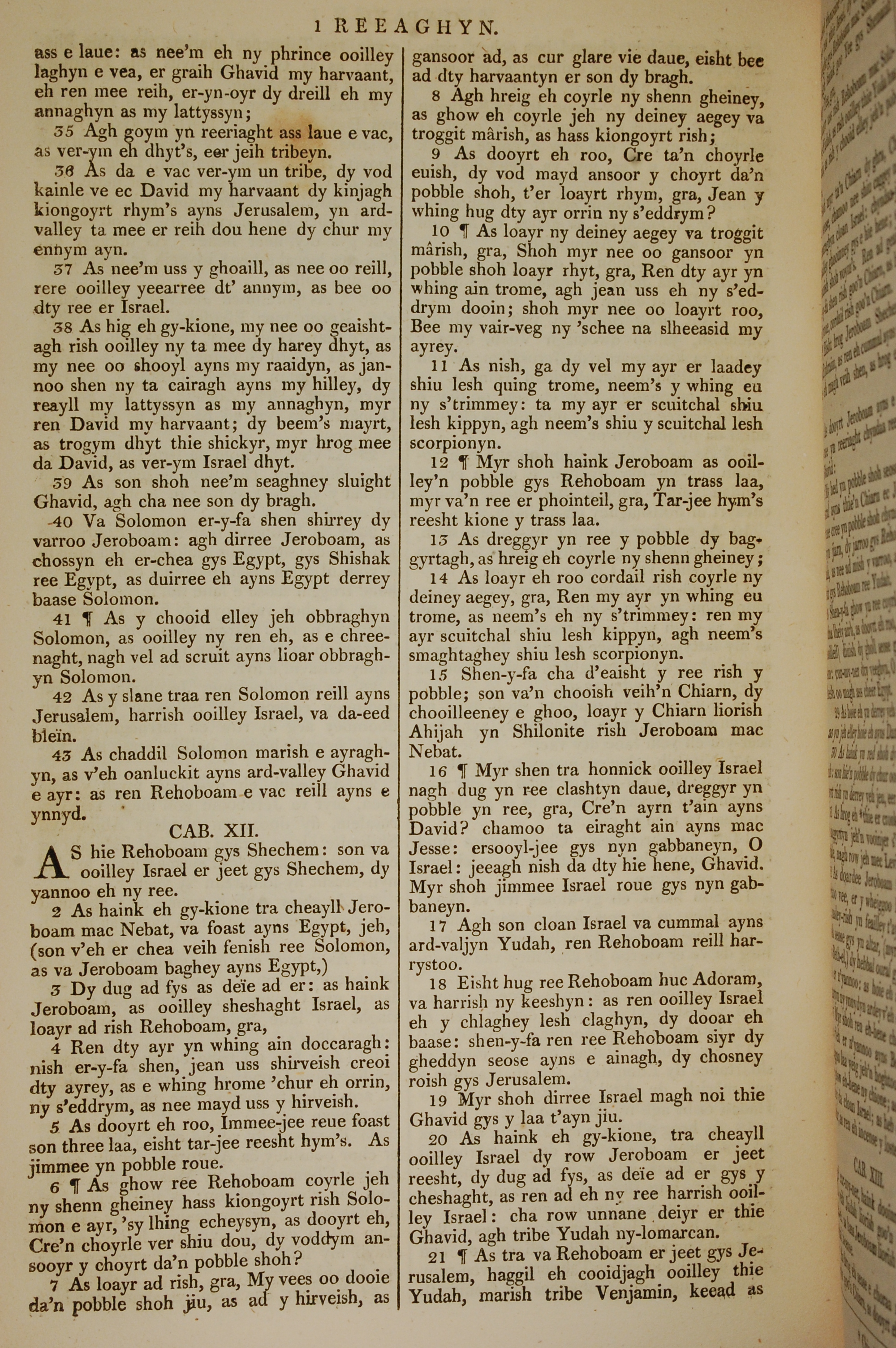 1819年曼島語聖經 列王紀上 11 章 35 節到 12 章 21 節