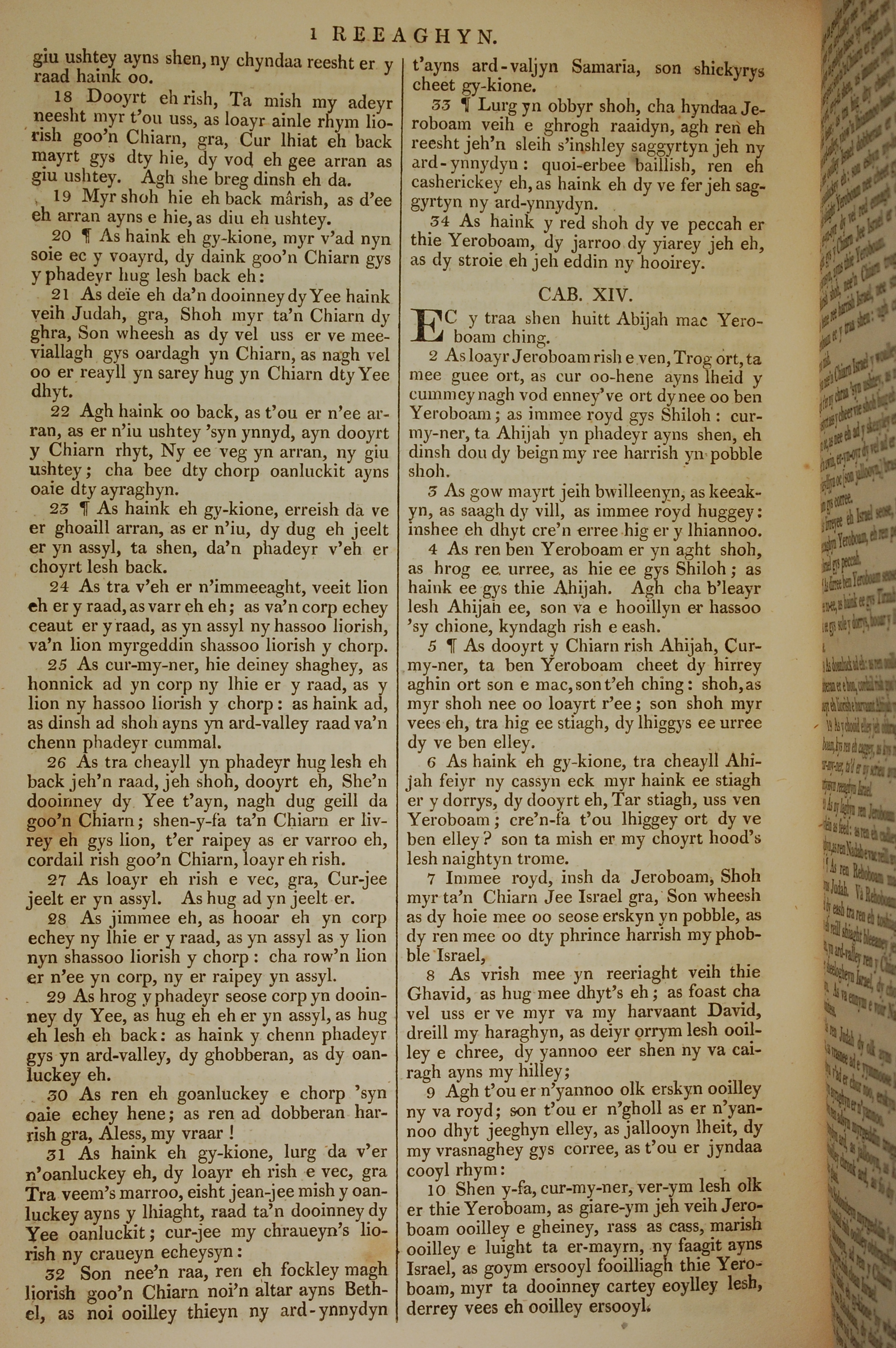 1819年曼島語聖經 列王紀上 13 章 18 節到 14 章 10 節