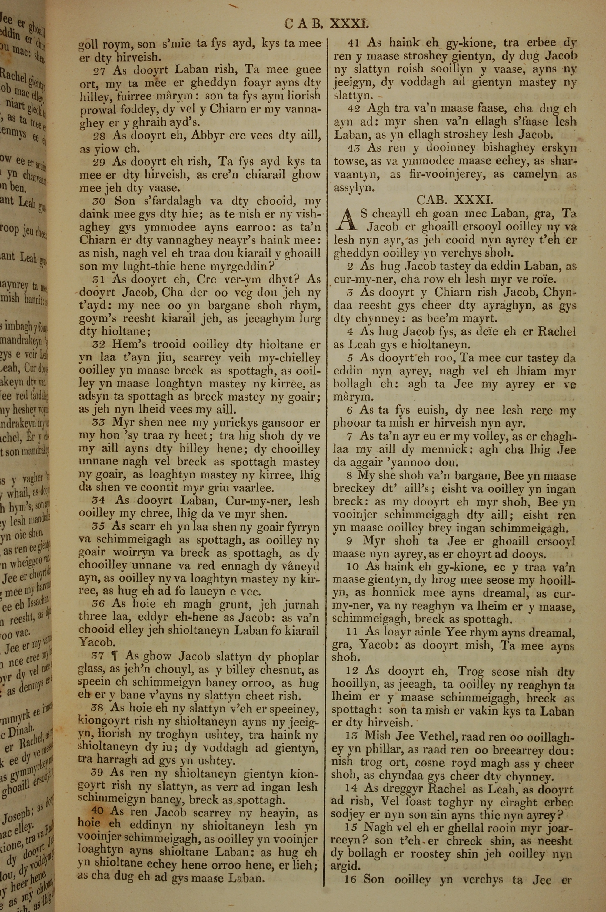 1819年曼島語聖經 創世記 30 章 27 節到 31 章 16 節