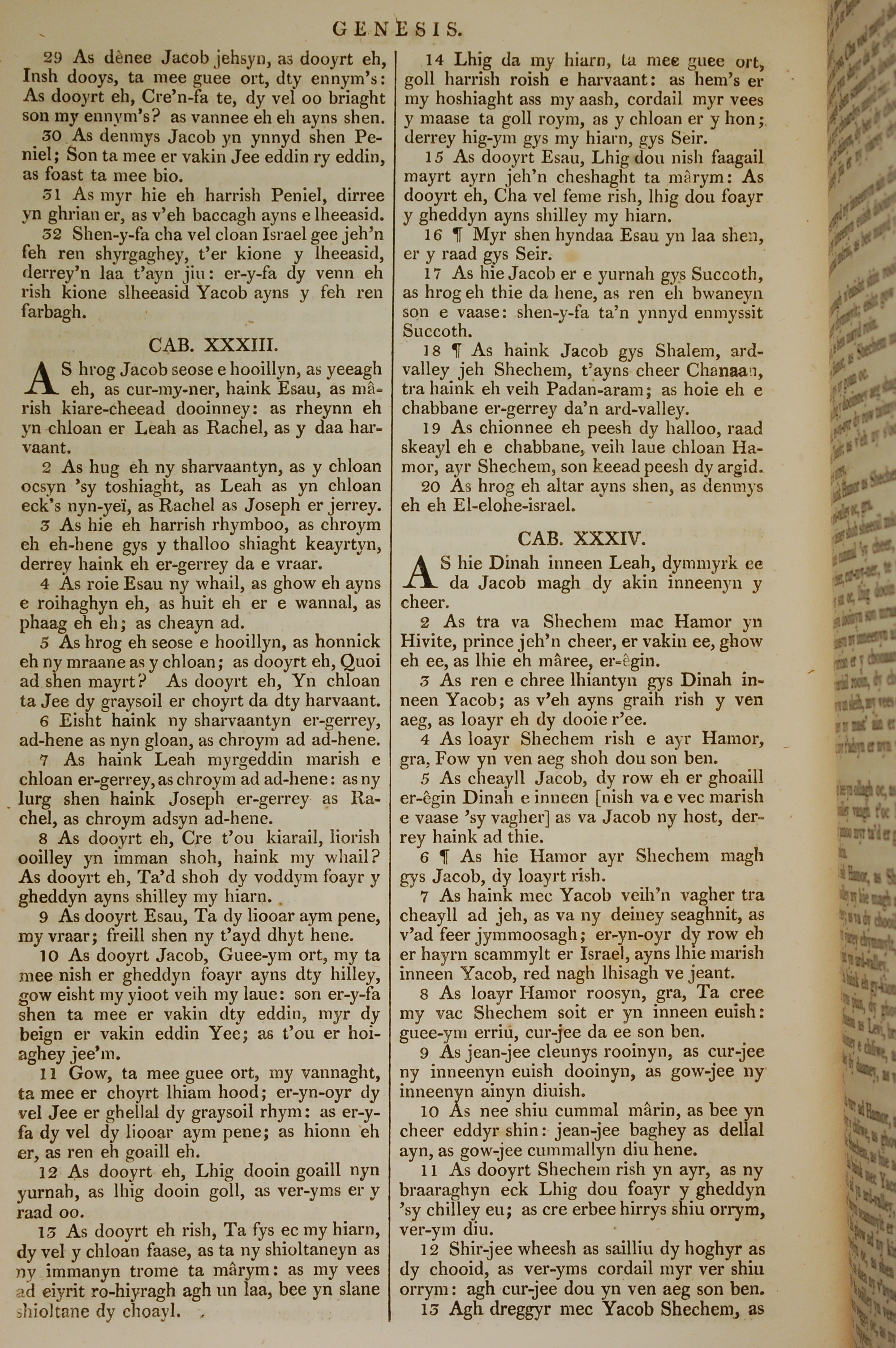 1819年曼島語聖經 創世記 32 章 29 節到 34 章 13 節