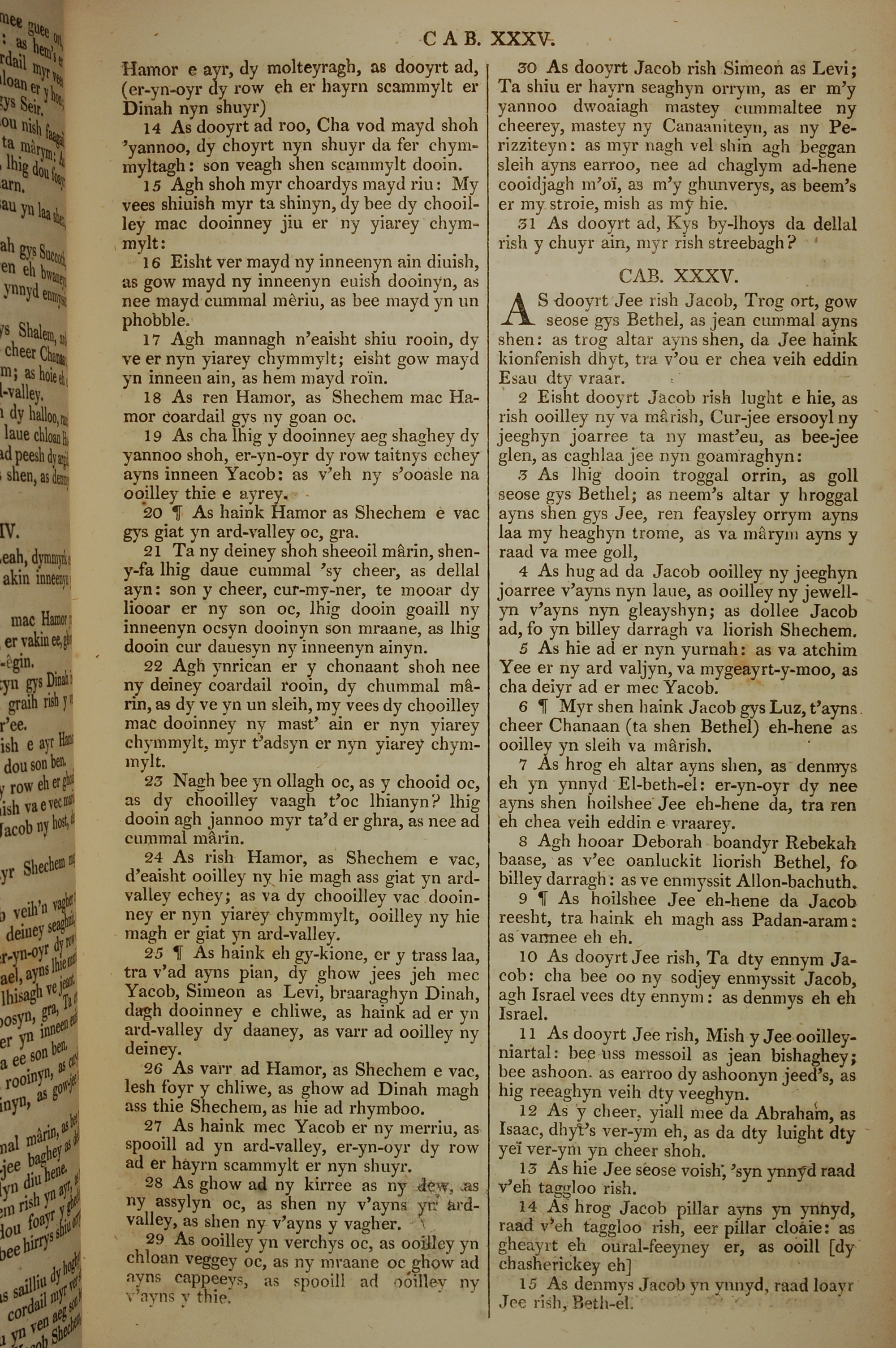 1819年曼島語聖經 創世記 34 章 14 節到 35 章 15 節