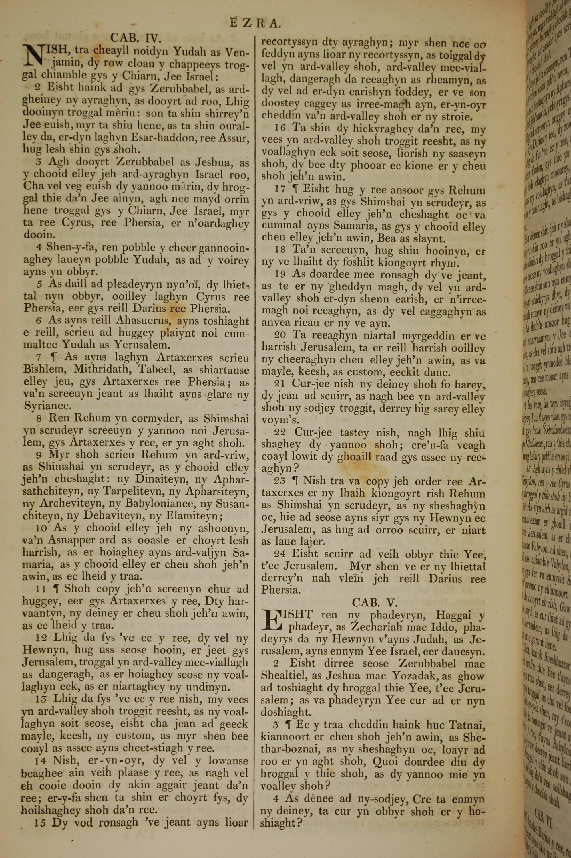 1819年曼島語聖經 以斯拉記 4 章 1 節到 5 章 4 節