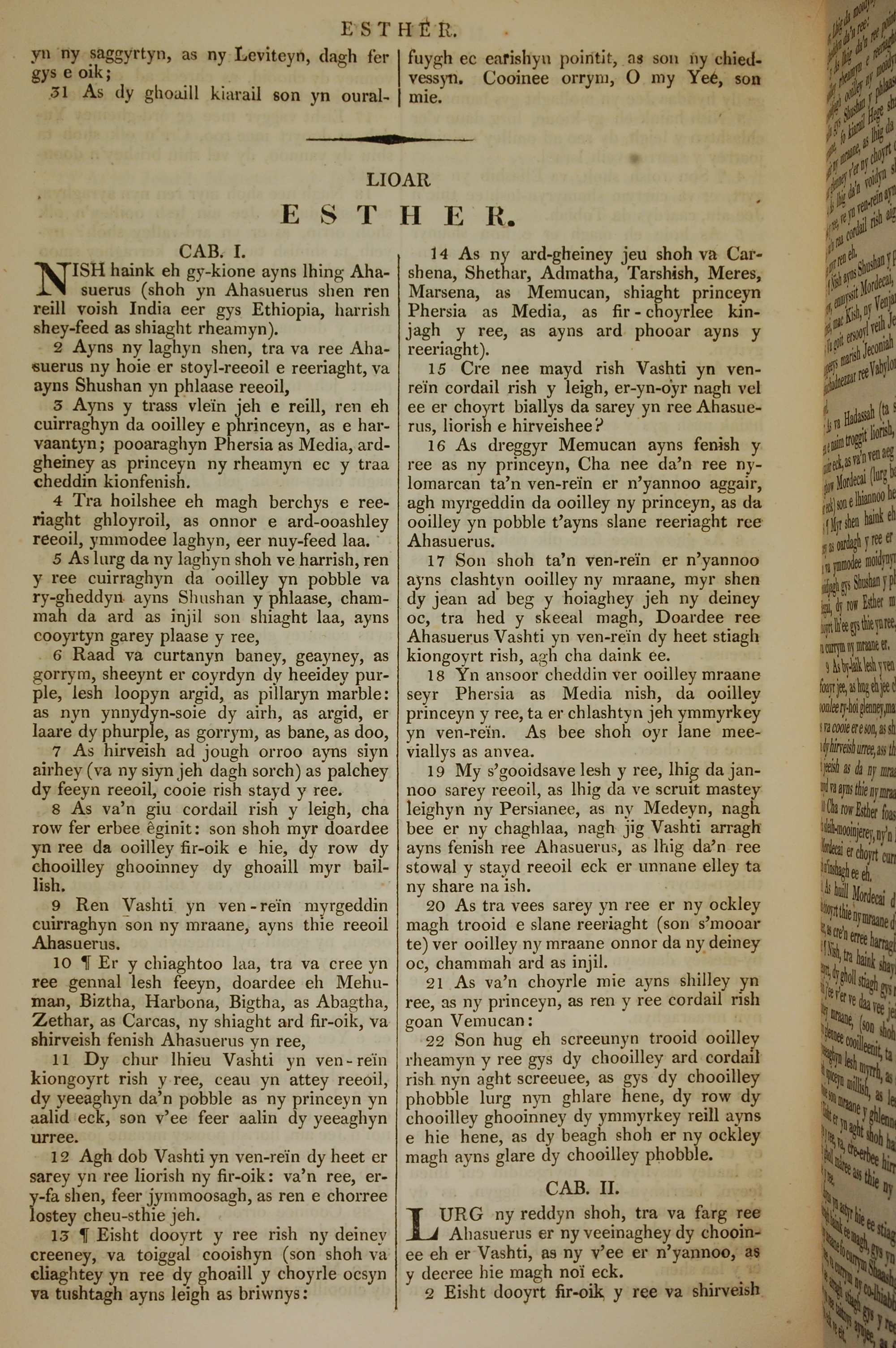 1819年曼島語聖經 以斯帖記 1 章 1 節到 2 章 2 節
