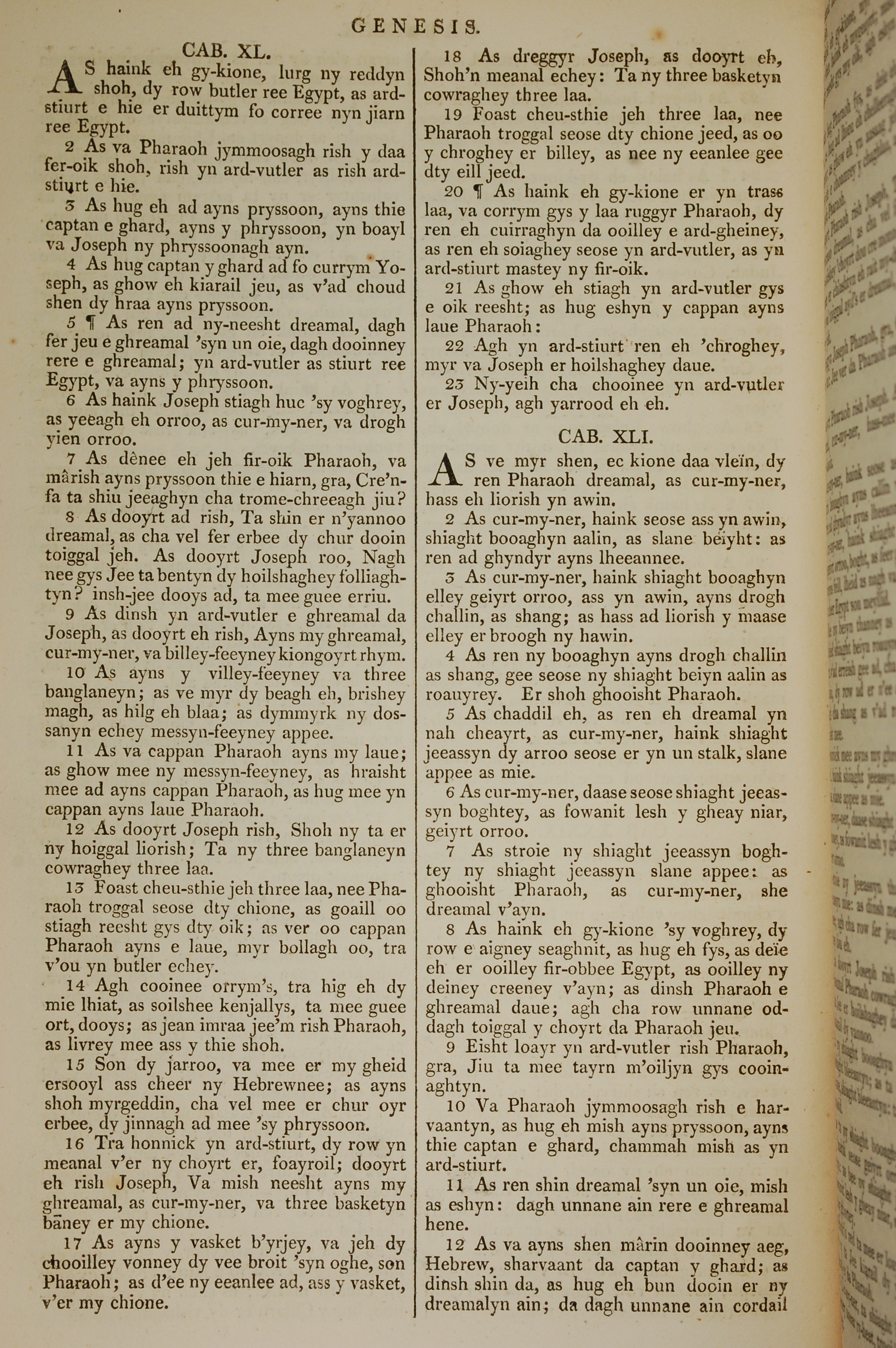 1819年曼島語聖經 創世記 40 章 1 節到 41 章 12 節