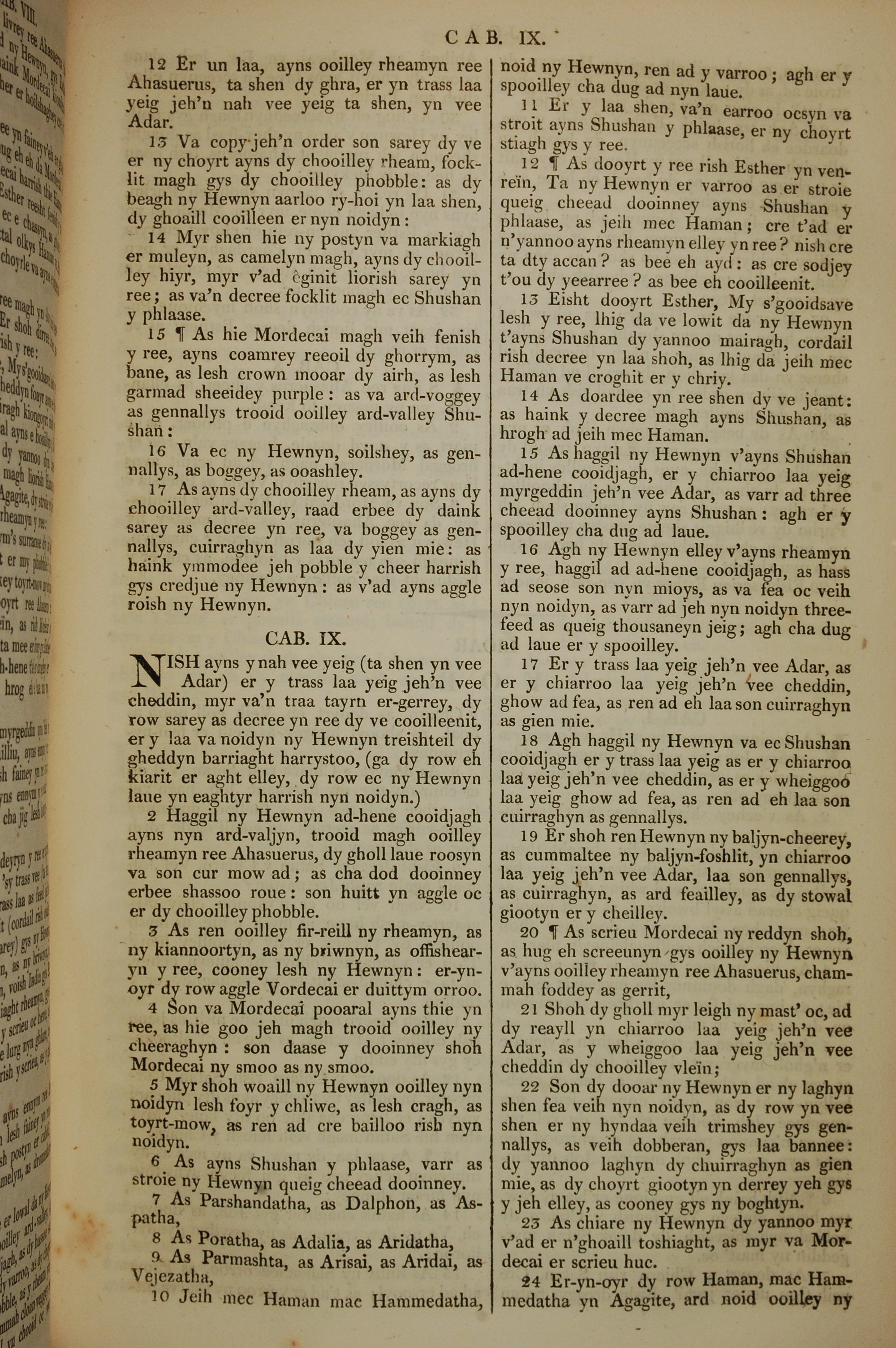 1819年曼島語聖經 以斯帖記 8 章 12 節到 9 章 24 節