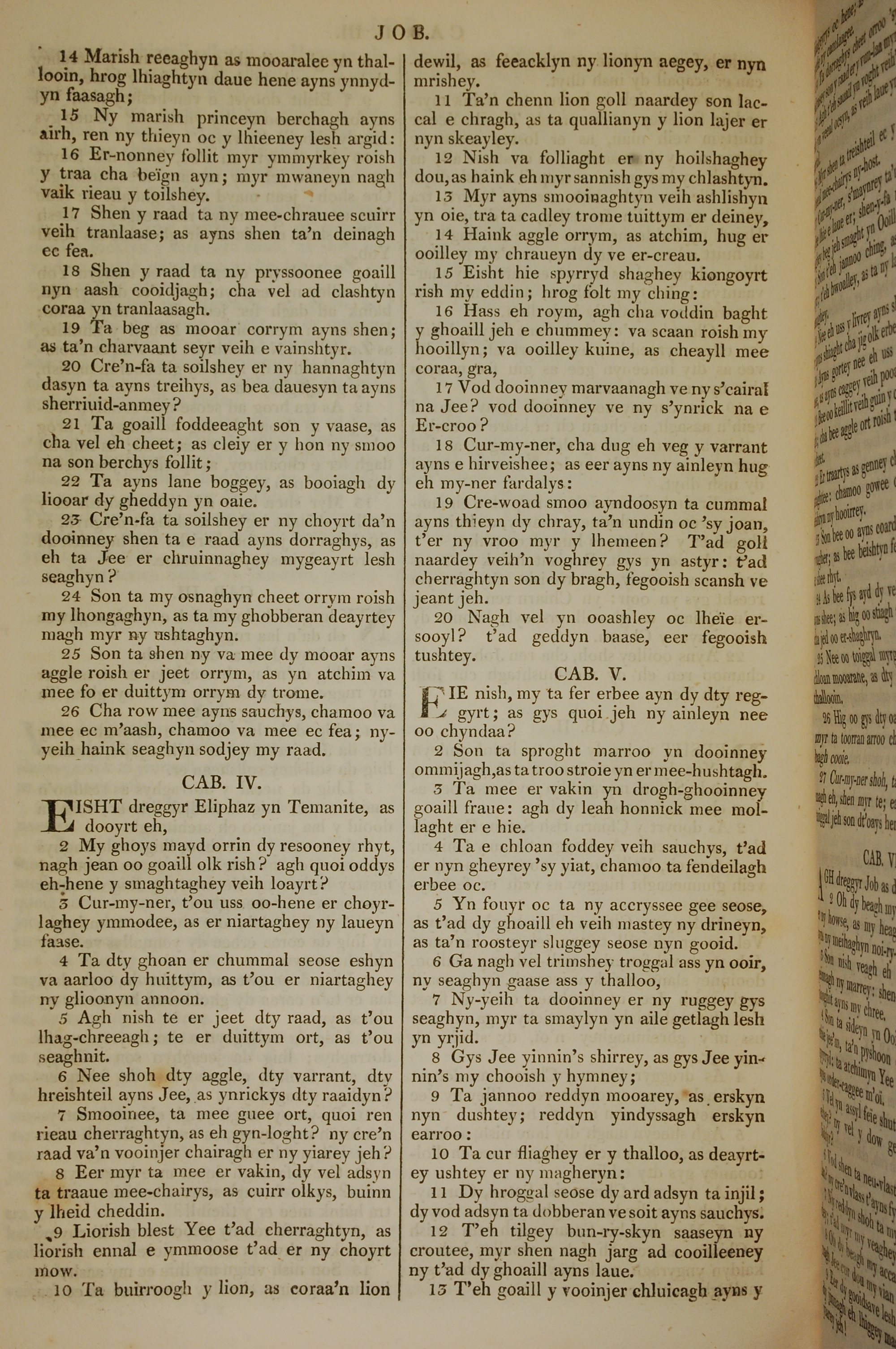 1819年曼島語聖經 約伯記 3 章 14 節到 5 章 13 節