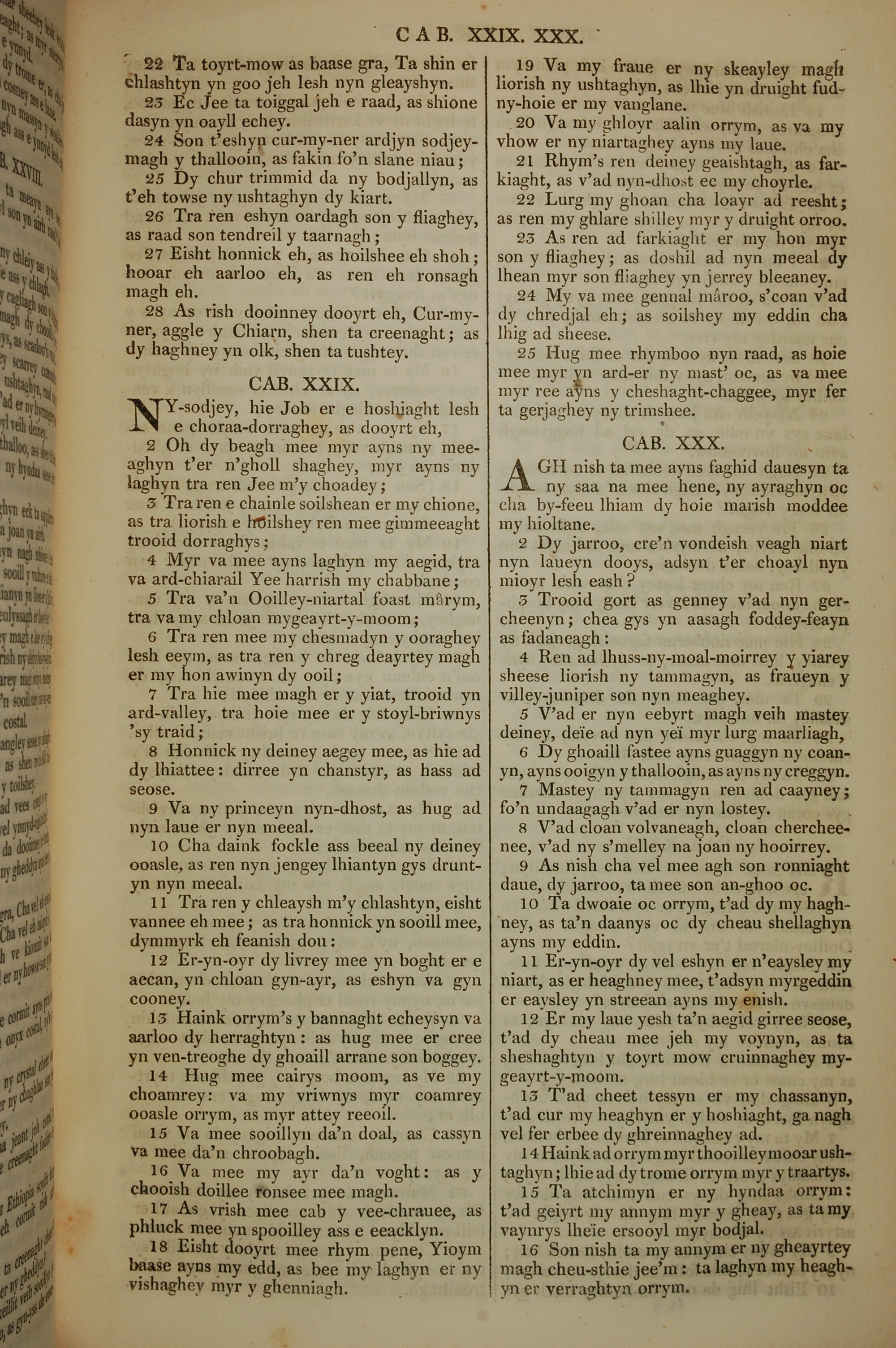 1819年曼島語聖經 約伯記 28 章 22 節到 30 章 16 節