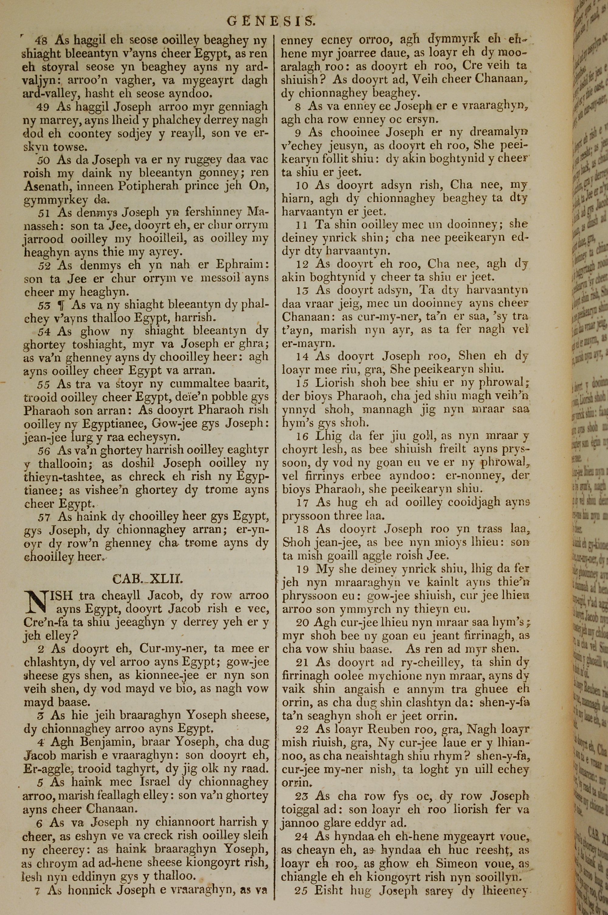 1819年曼島語聖經 創世記 41 章 48 節到 42 章 25 節