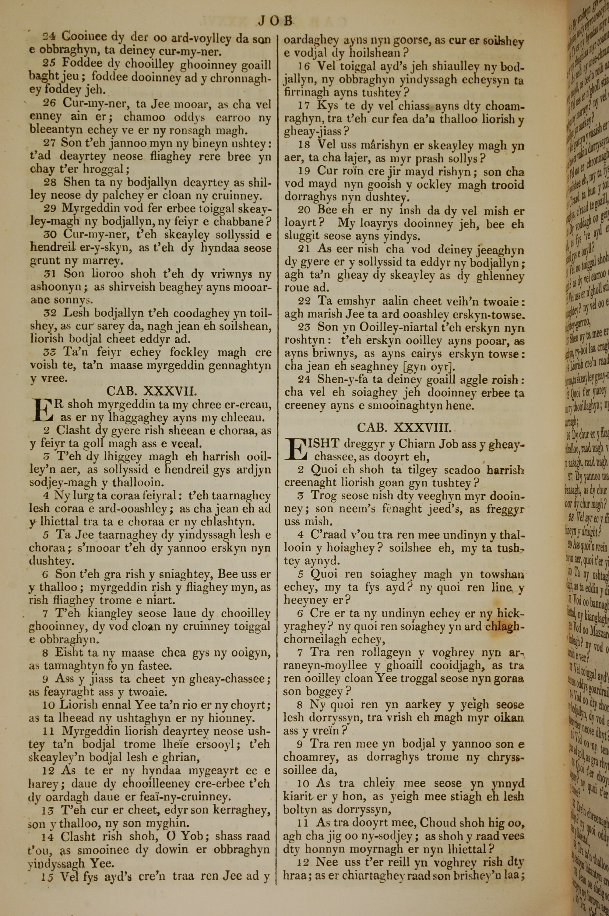 1819年曼島語聖經 約伯記 36 章 24 節到 38 章 12 節