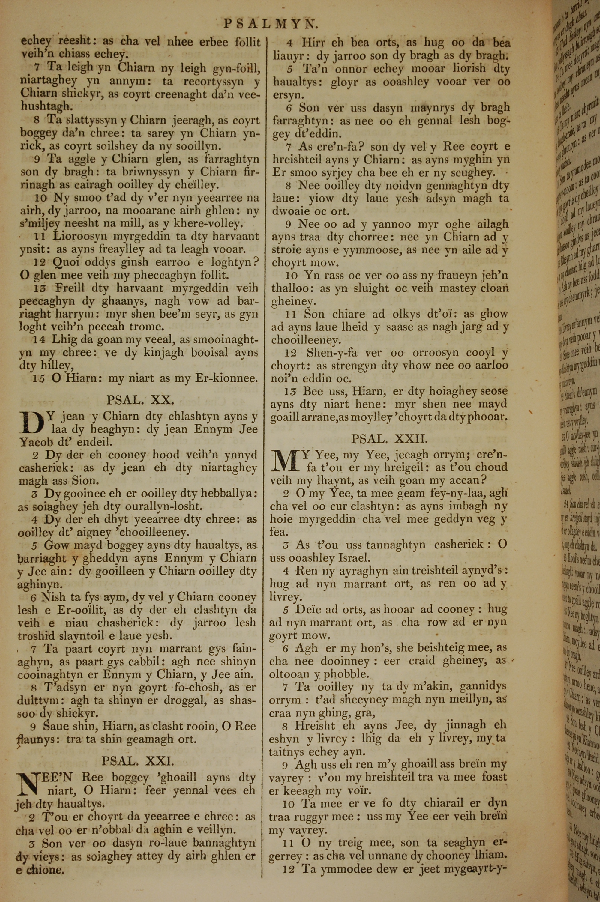 1819年曼島語聖經 詩篇 19 章 7 節到 22 章 12 節