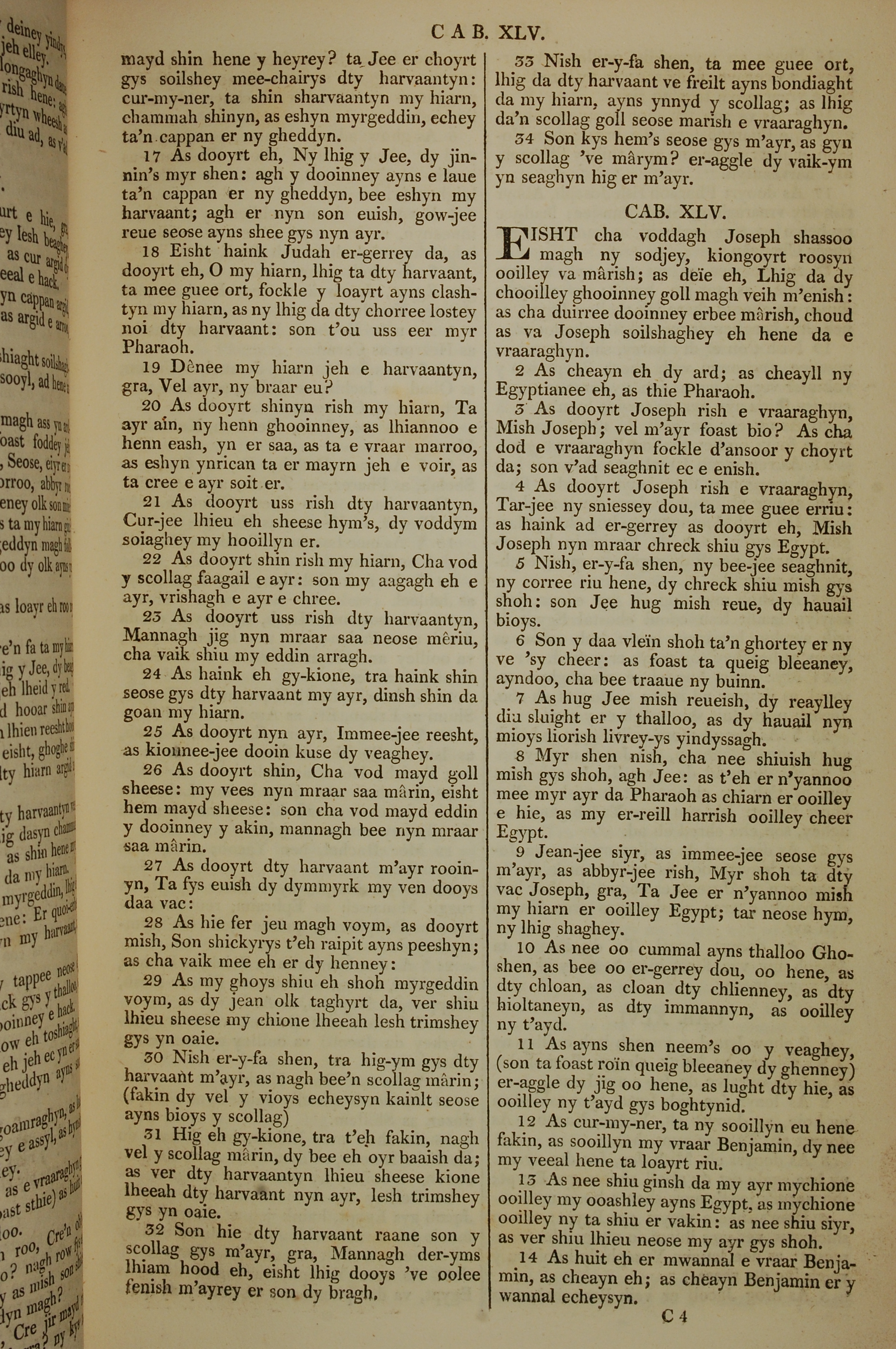 1819年曼島語聖經 創世記 44 章 17 節到 45 章 14 節