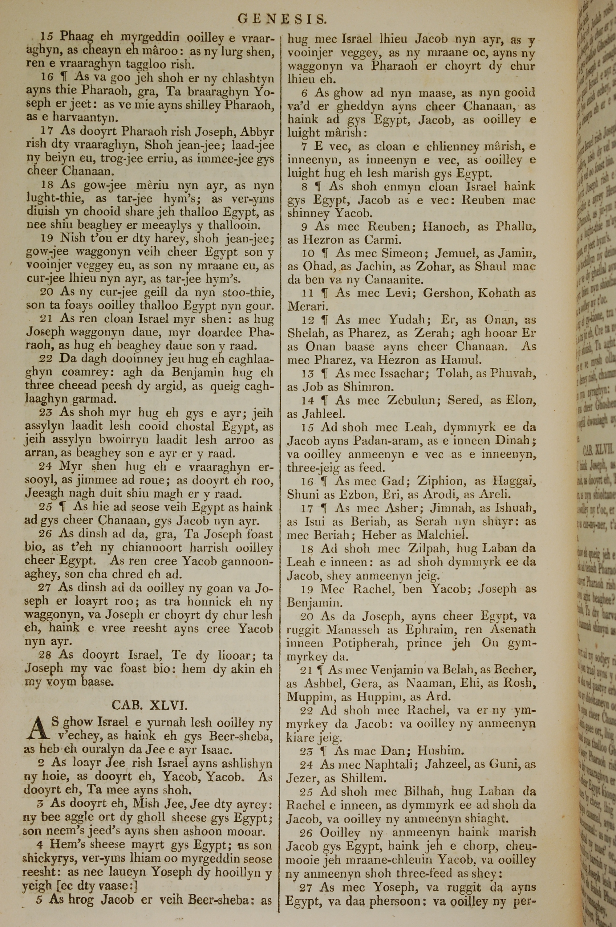 1819年曼島語聖經 創世記 45 章 15 節到 46 章 27 節