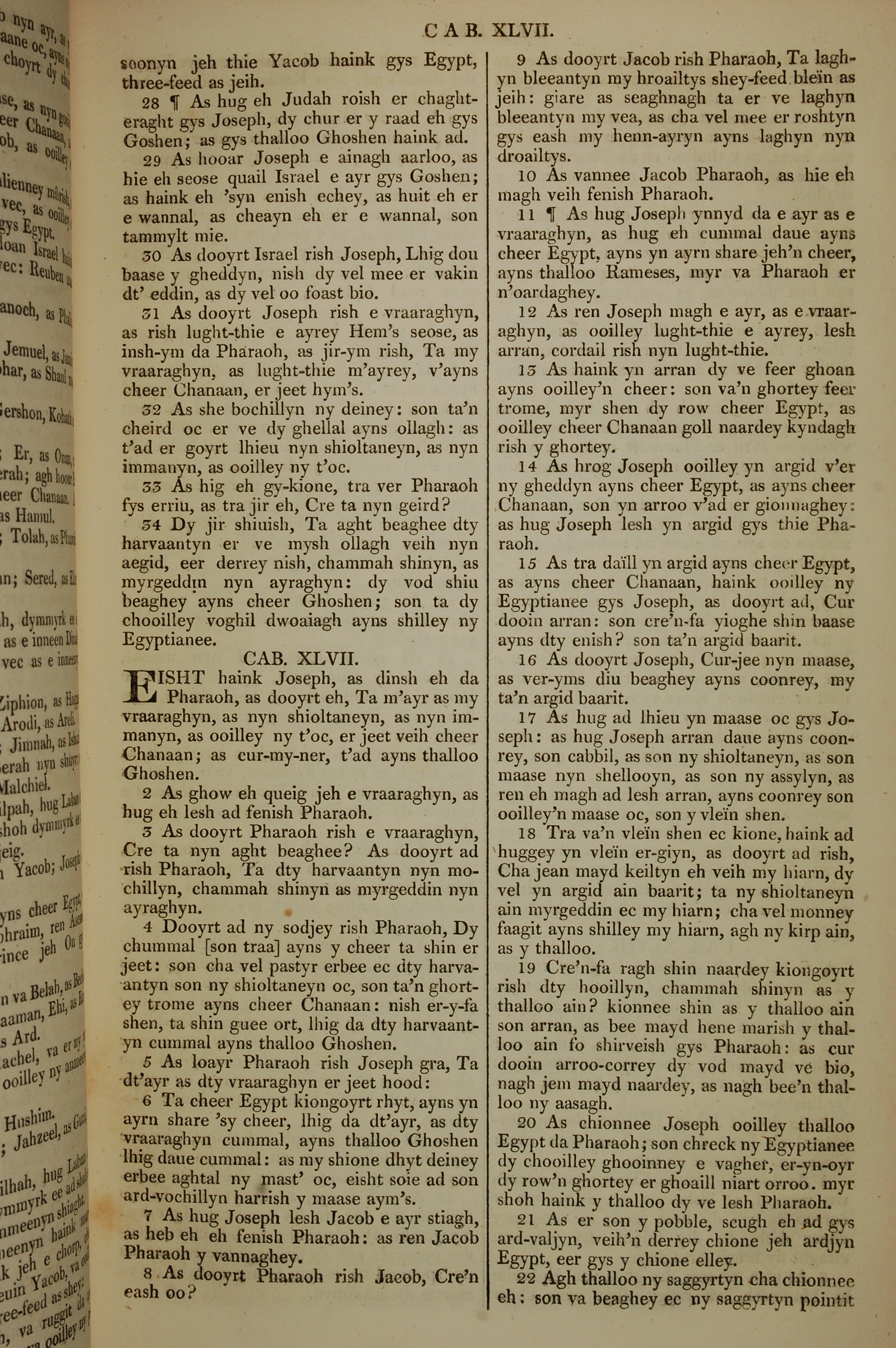 1819年曼島語聖經 創世記 46 章 28 節到 47 章 22 節