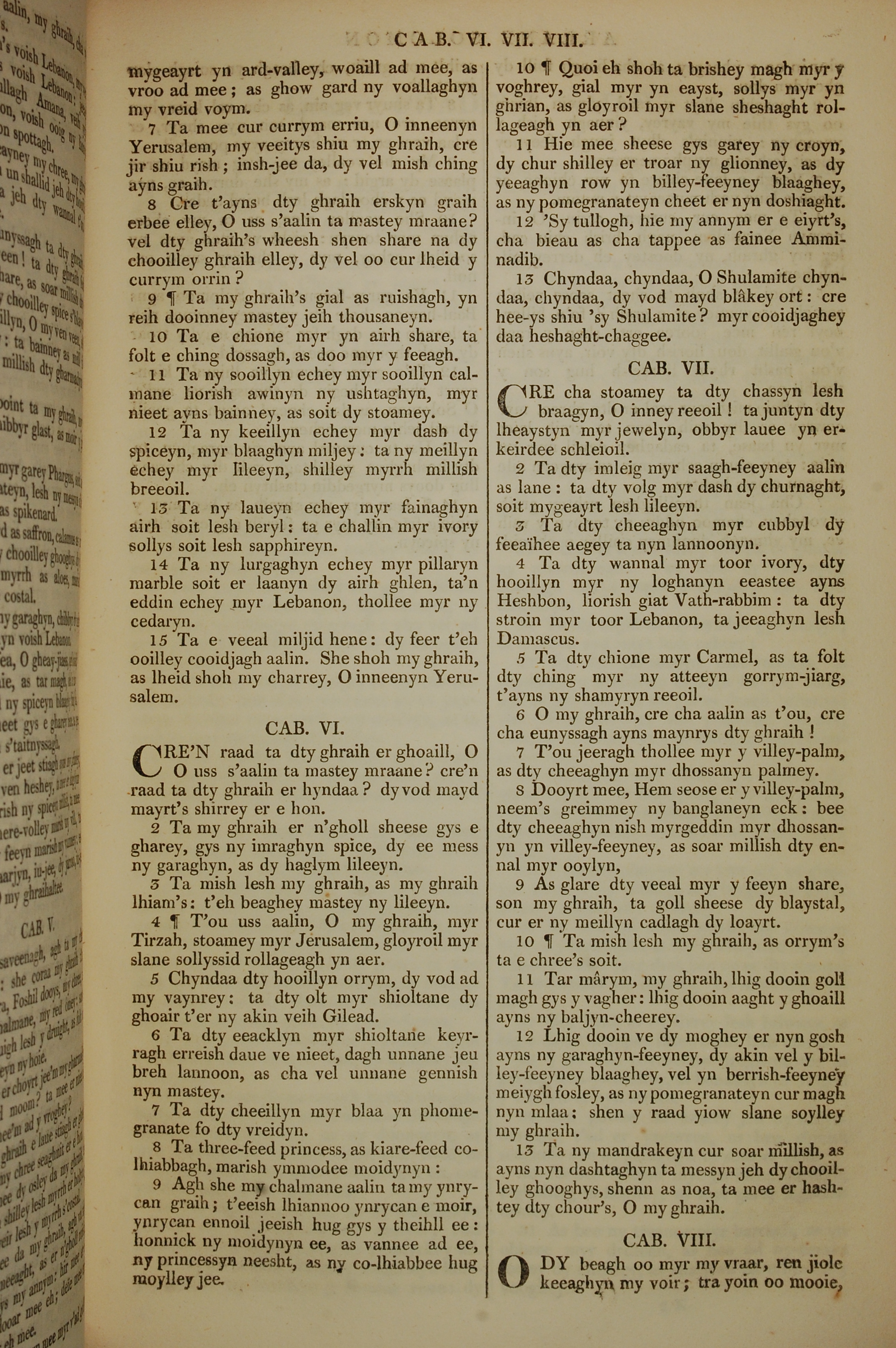 1819年曼島語聖經 雅歌 5 章 7 節到 8 章 1 節