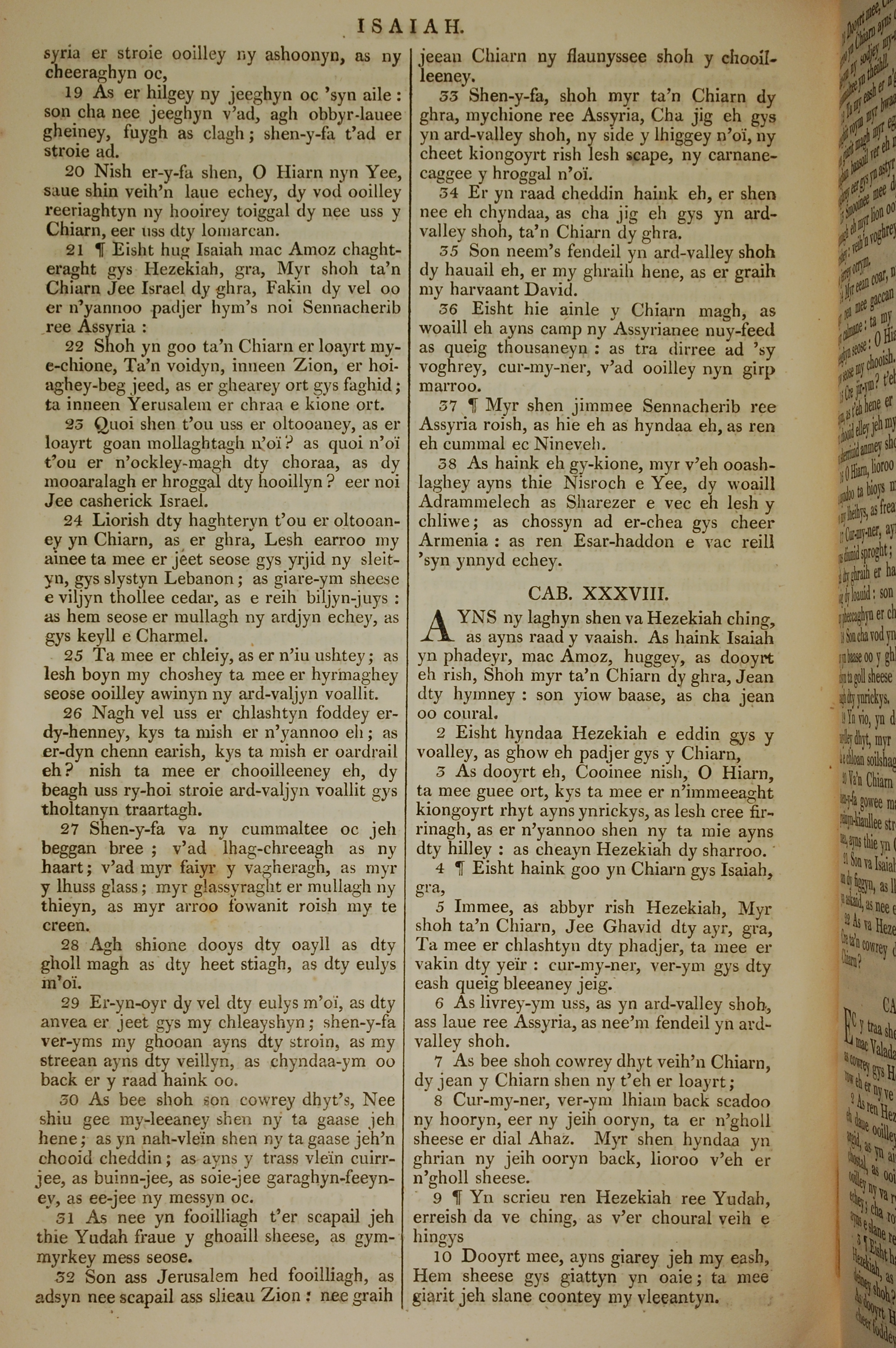 1819年曼島語聖經 以賽亞書 37 章 19 節到 38 章 10 節