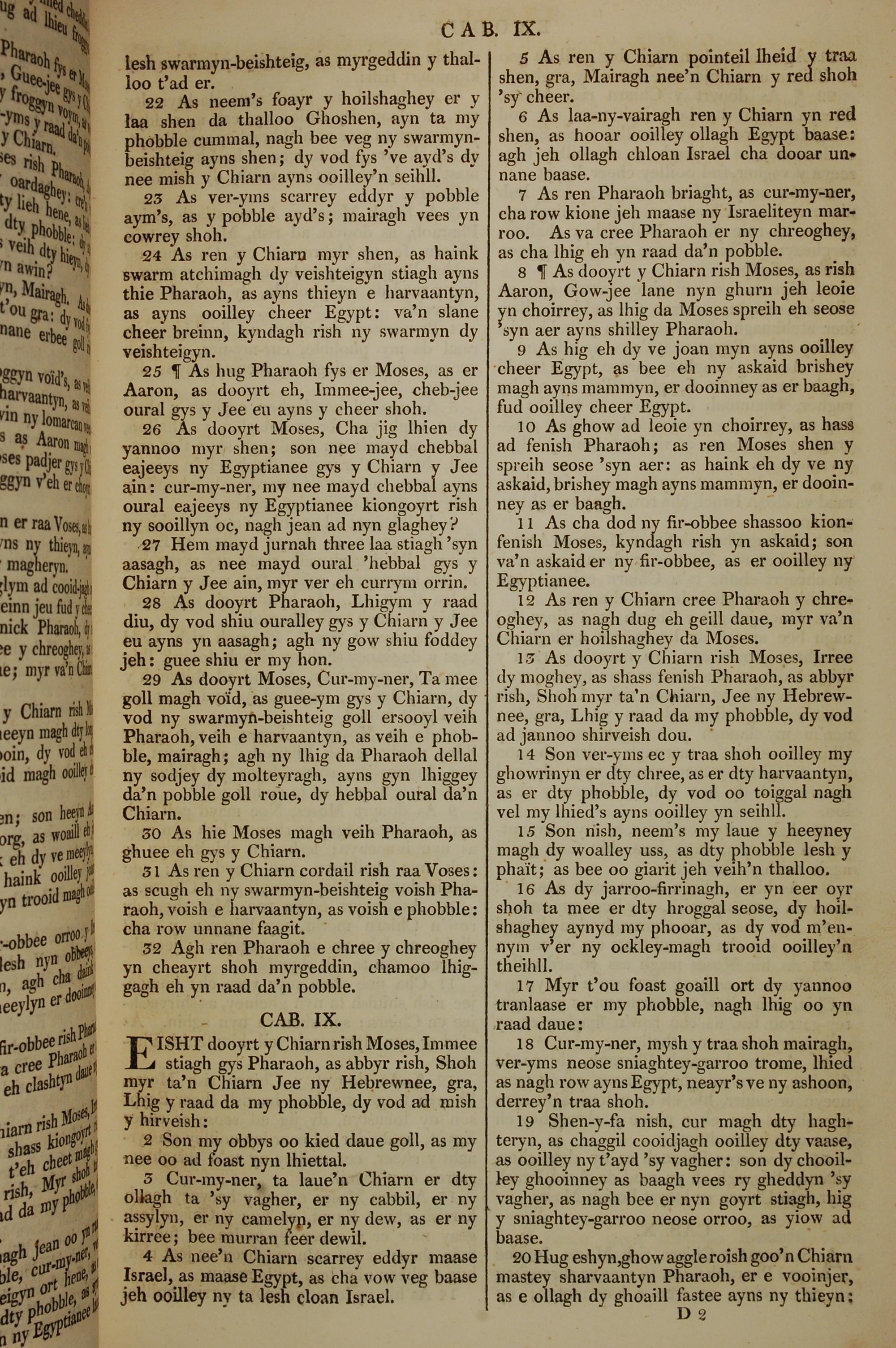 1819年曼島語聖經 出埃及記 8 章 22 節到 9 章 20 節