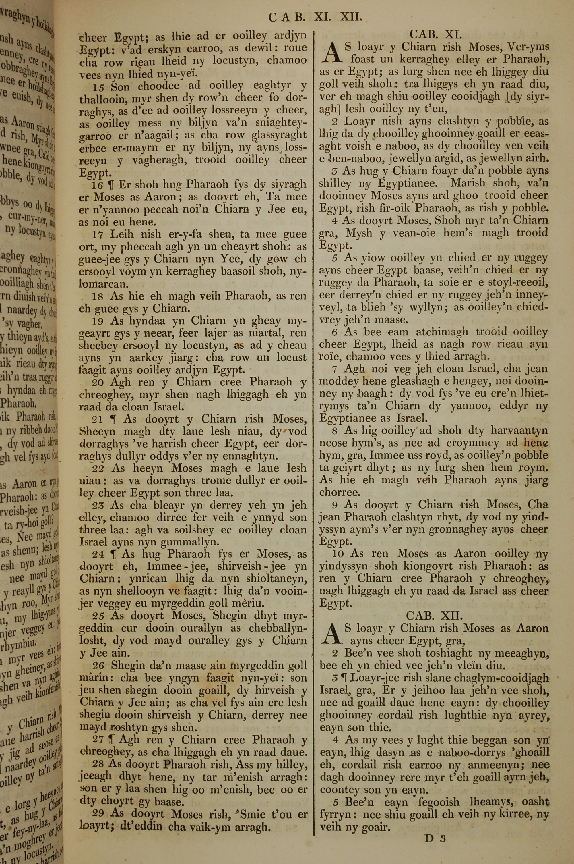 1819年曼島語聖經 出埃及記 10 章 15 節到 12 章 5 節