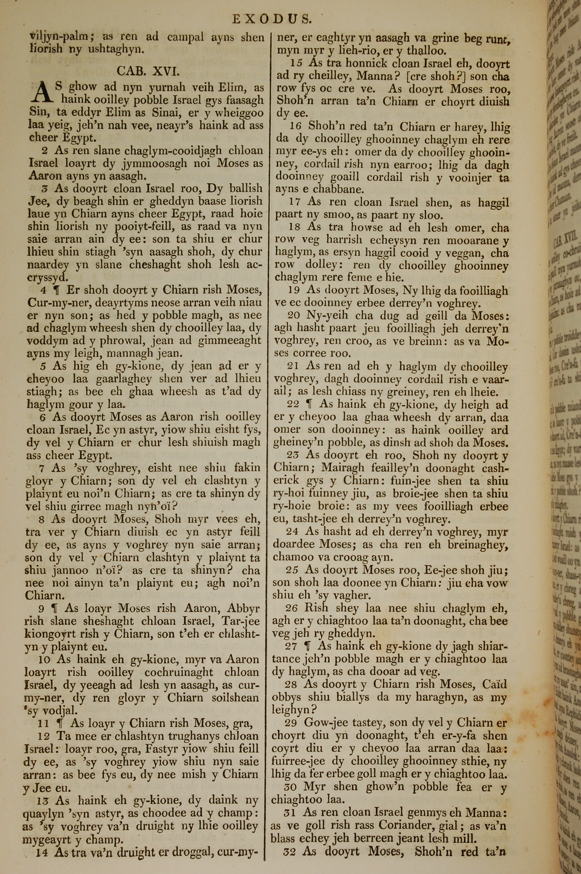 1819年曼島語聖經 出埃及記 16 章 1 節到 16 章 32 節