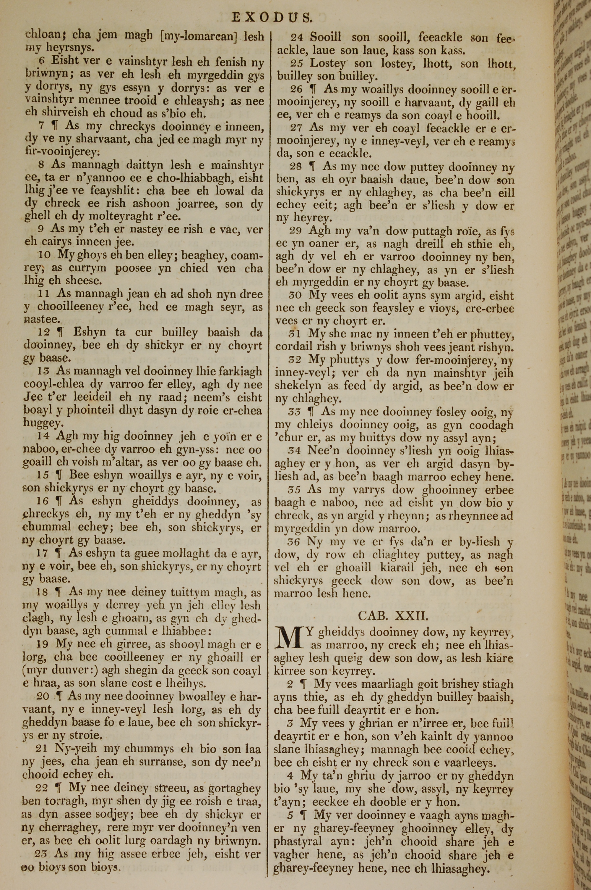 1819年曼島語聖經 出埃及記 21 章 6 節到 22 章 5 節