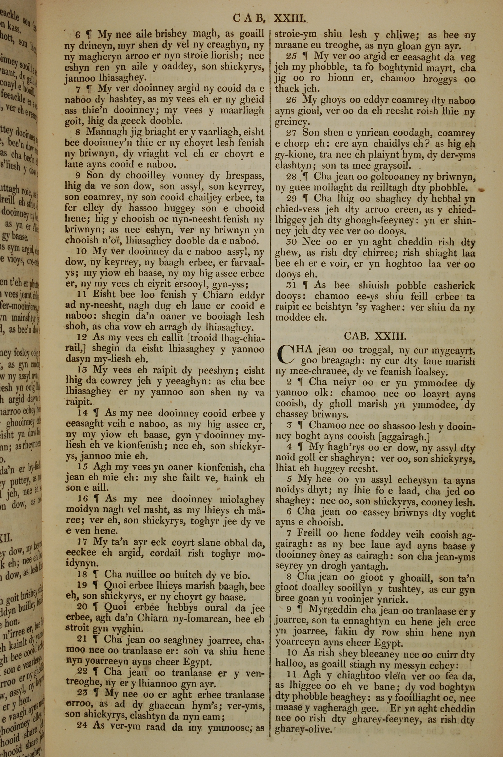 1819年曼島語聖經 出埃及記 22 章 6 節到 23 章 11 節