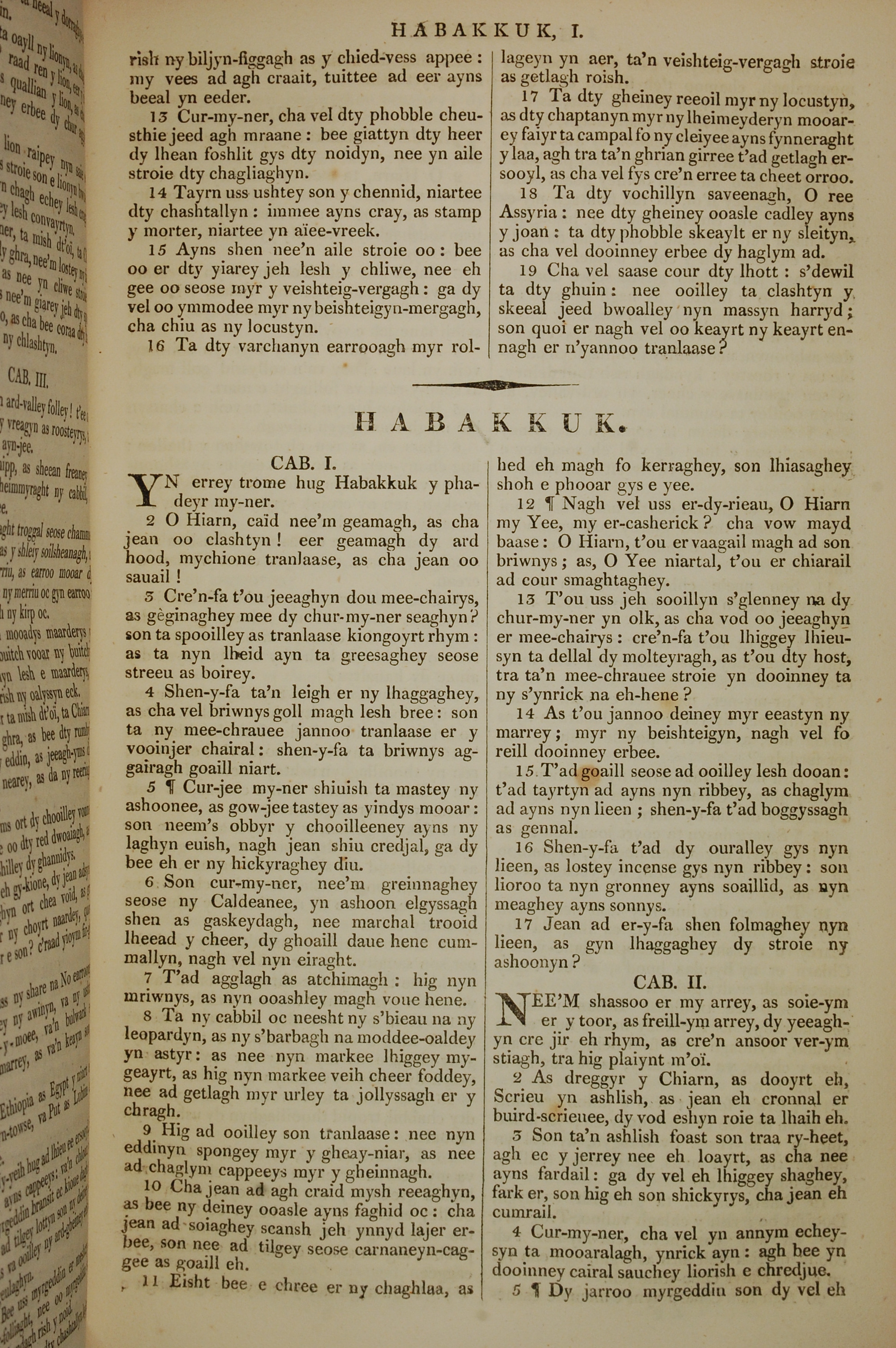 1819年曼島語聖經 哈巴谷書 1 章 1 節到 2 章 5 節