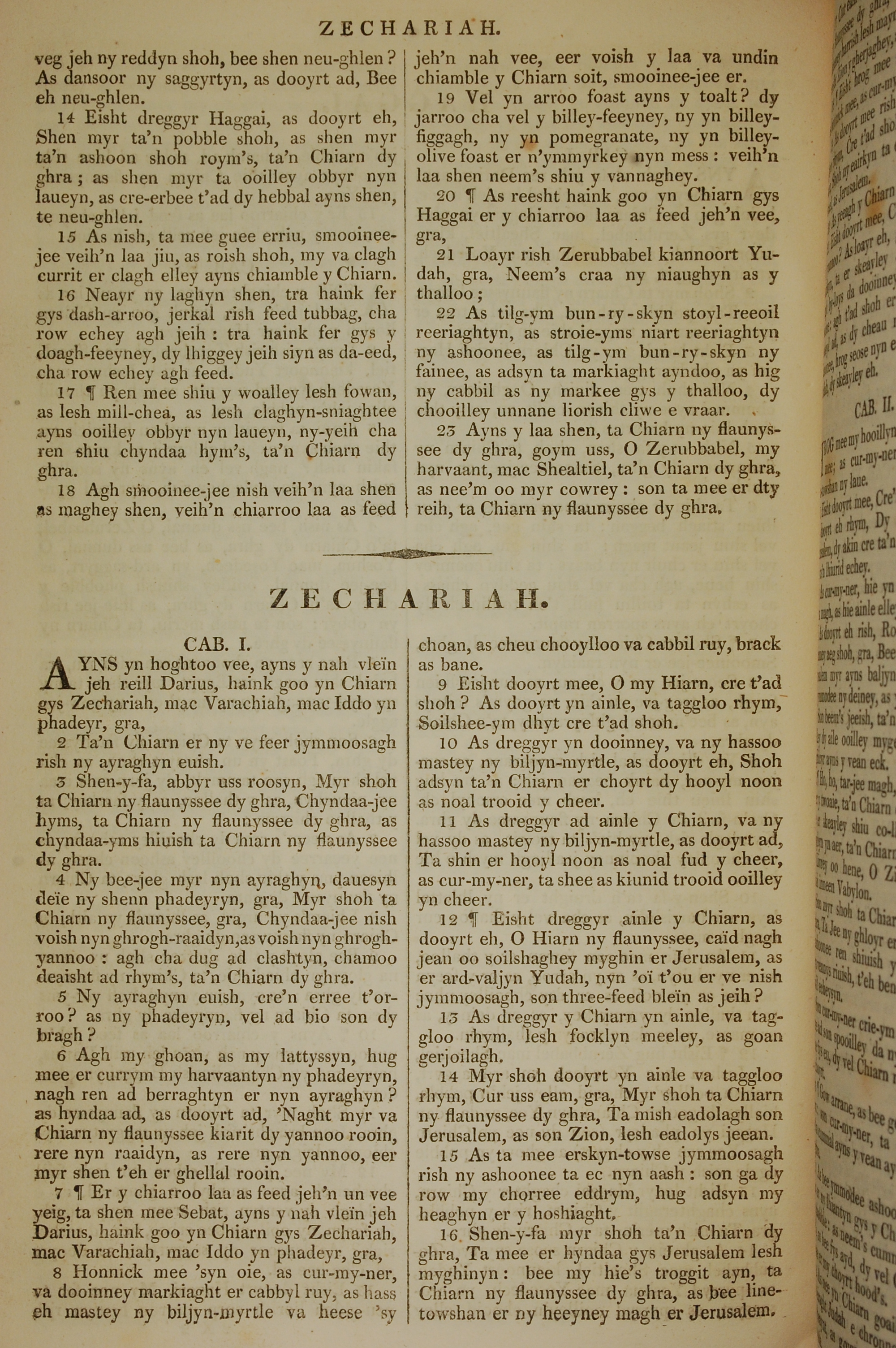 1819年曼島語聖經 撒迦利亞書 1 章 1 節到 1 章 16 節