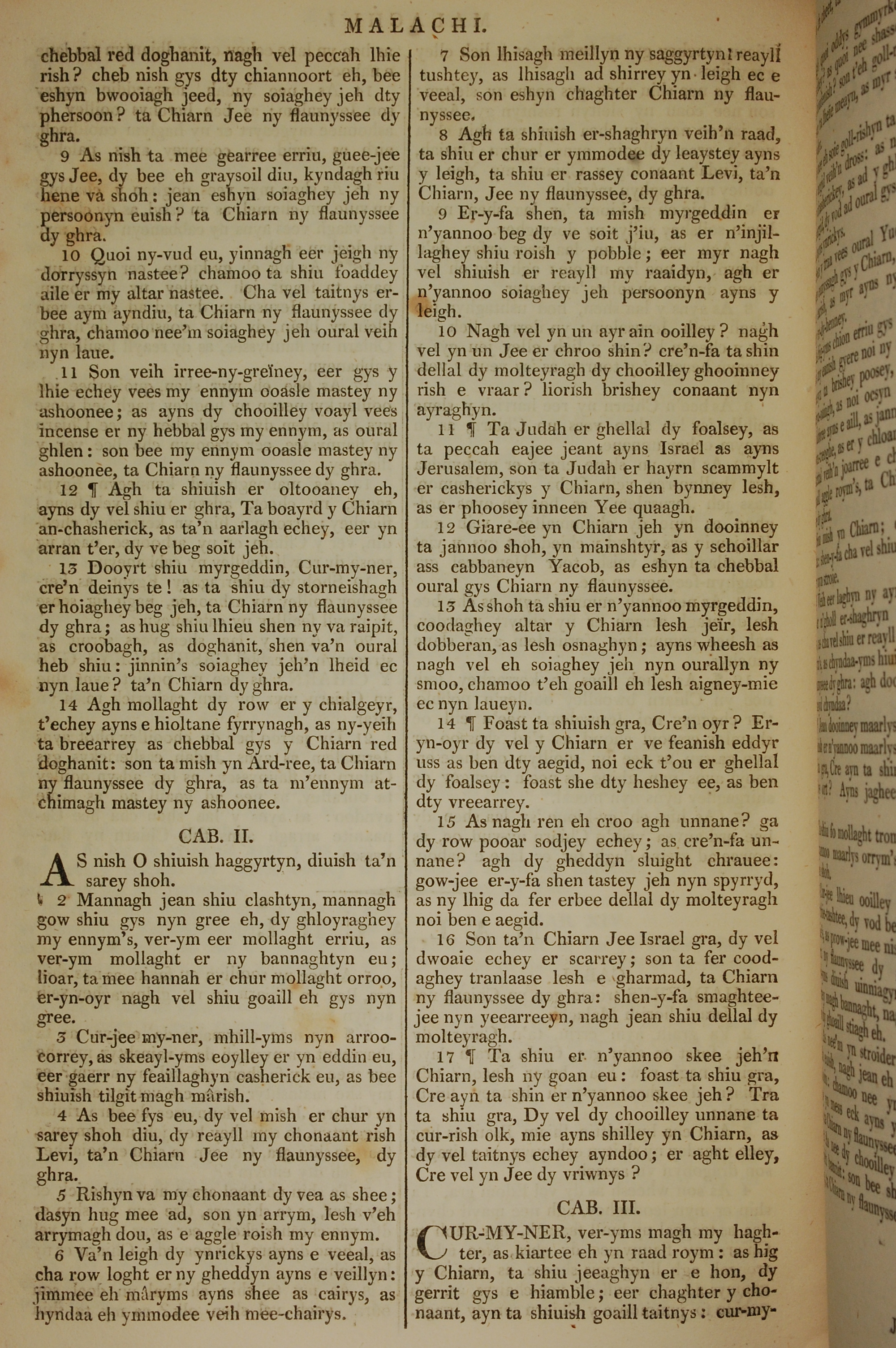 1819年曼島語聖經 瑪拉基書 1 章 9 節到 3 章 1 節