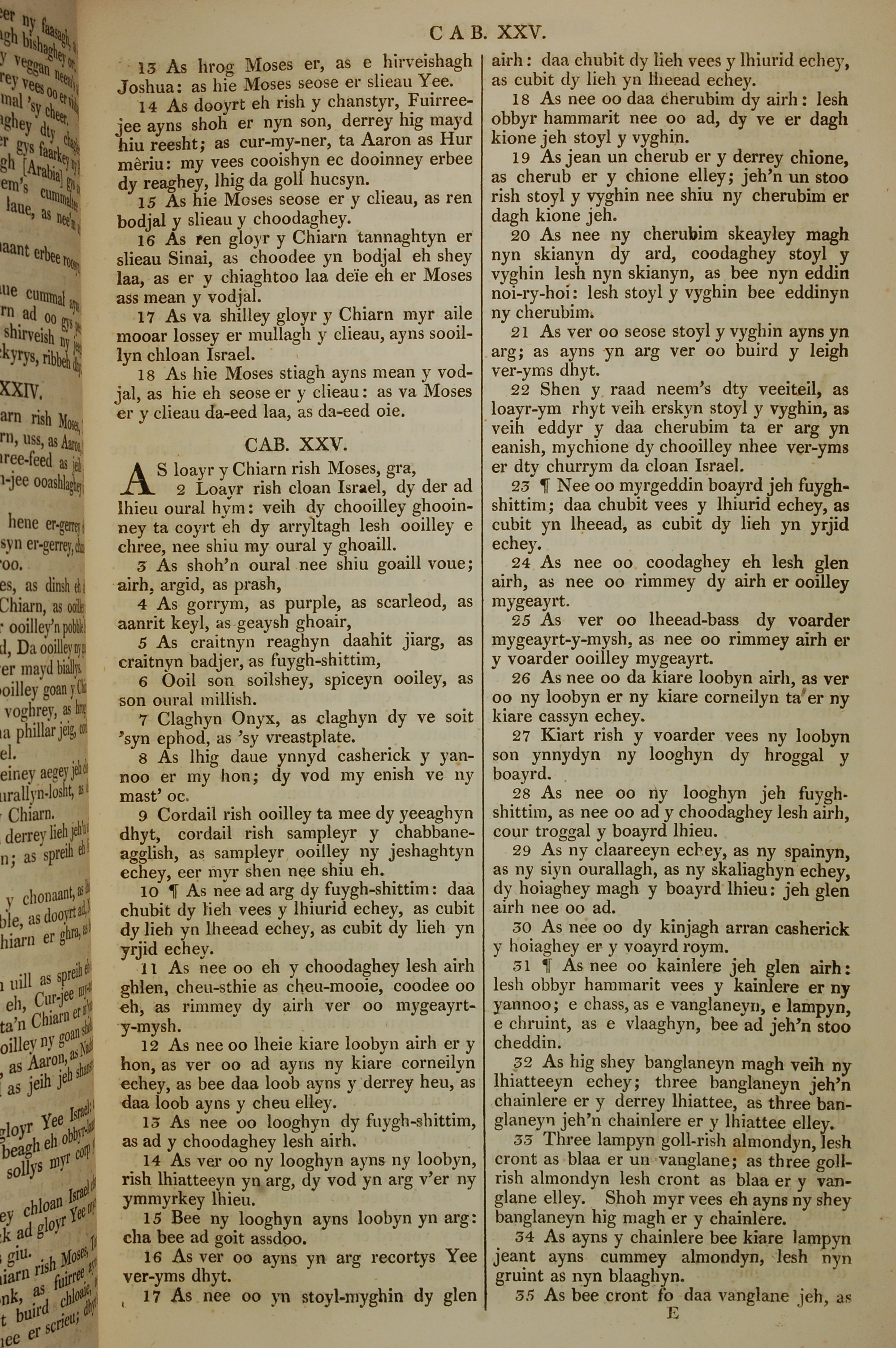 1819年曼島語聖經 出埃及記 24 章 13 節到 25 章 35 節