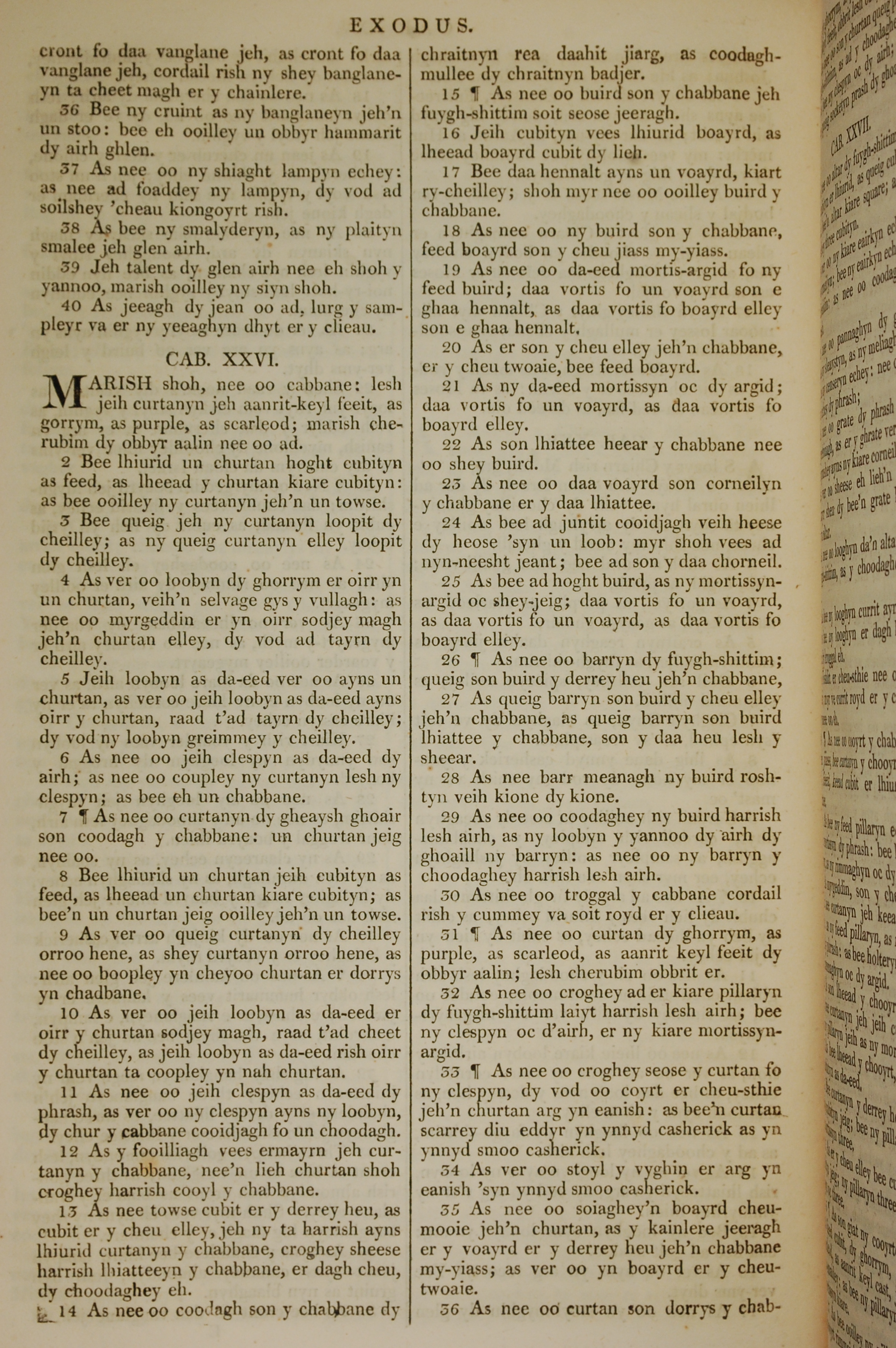 1819年曼島語聖經 出埃及記 25 章 36 節到 26 章 36 節