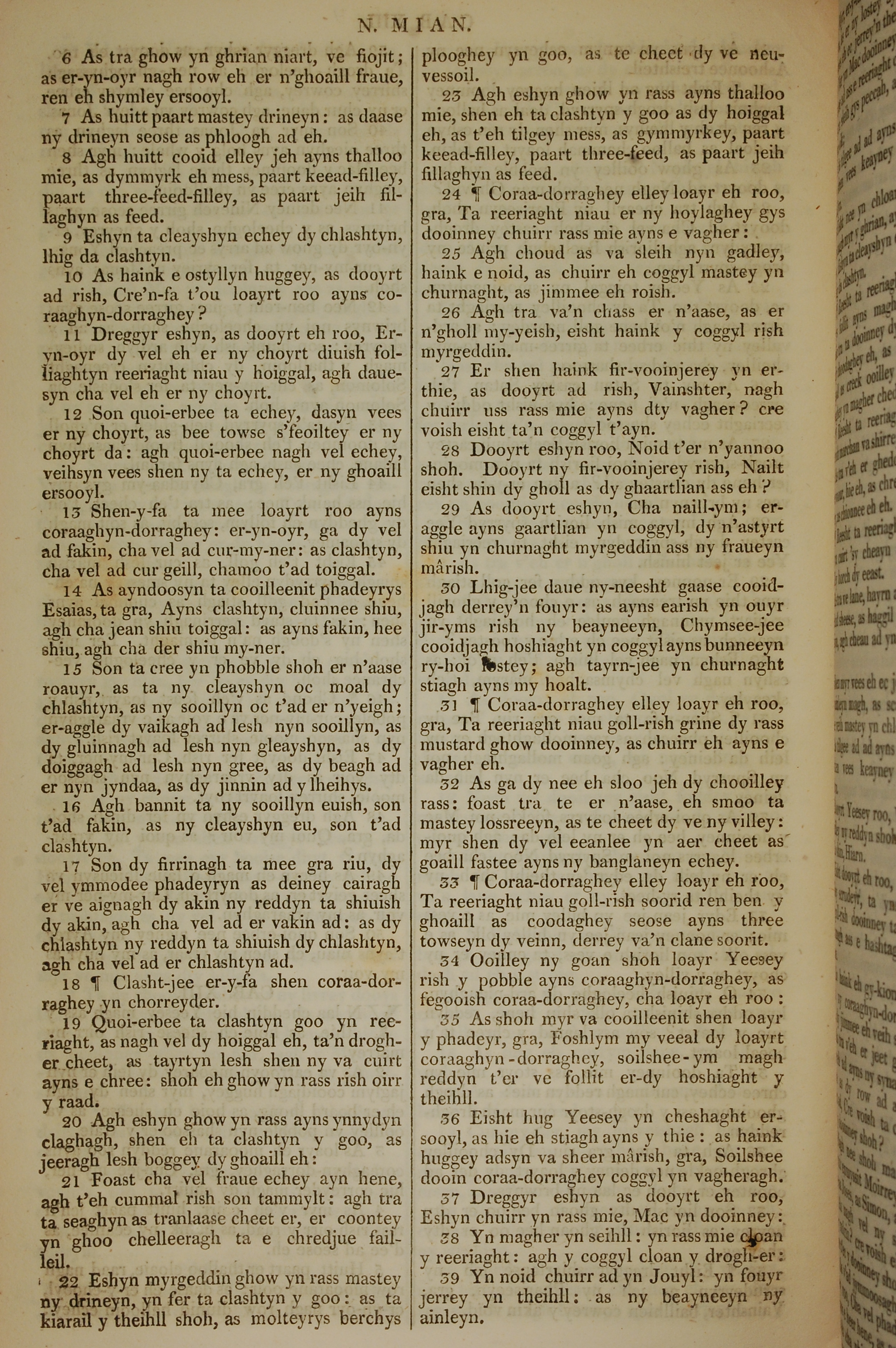 1819年曼島語聖經 馬太福音 13 章 6 節到 13 章 39 節