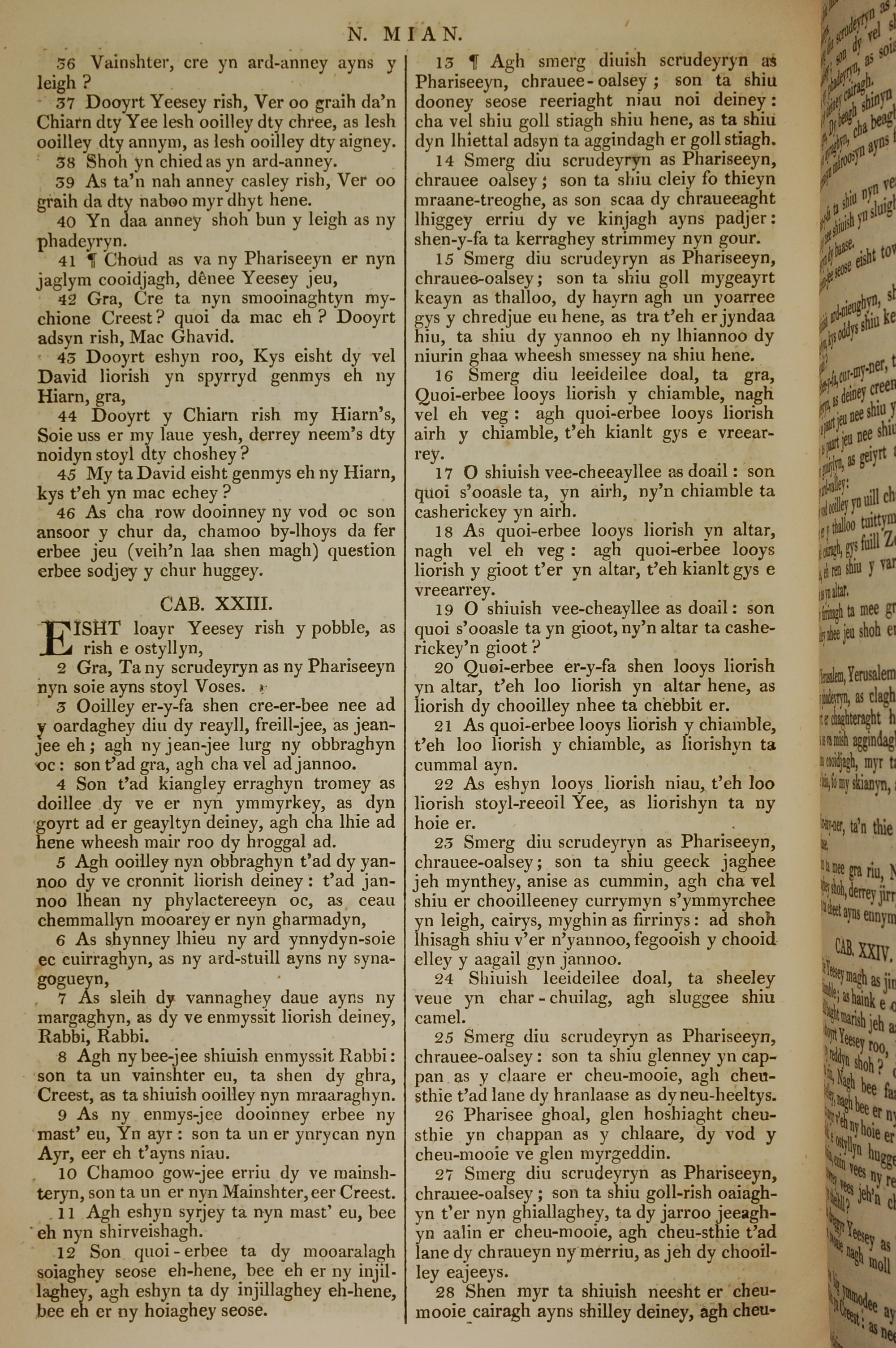 1819年曼島語聖經 馬太福音 22 章 36 節到 23 章 28 節