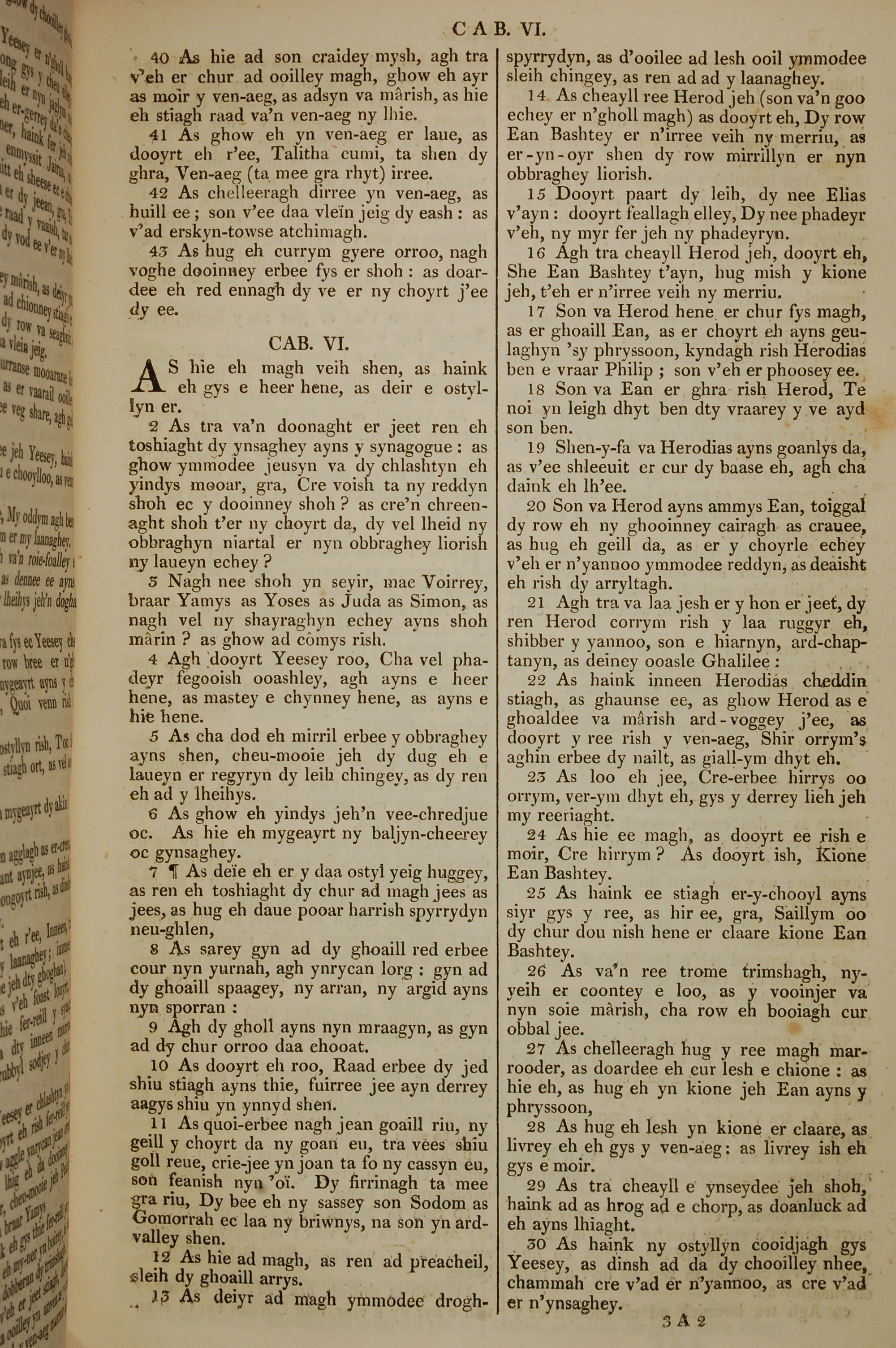 1819年曼島語聖經 馬可福音 5 章 40 節到 6 章 30 節