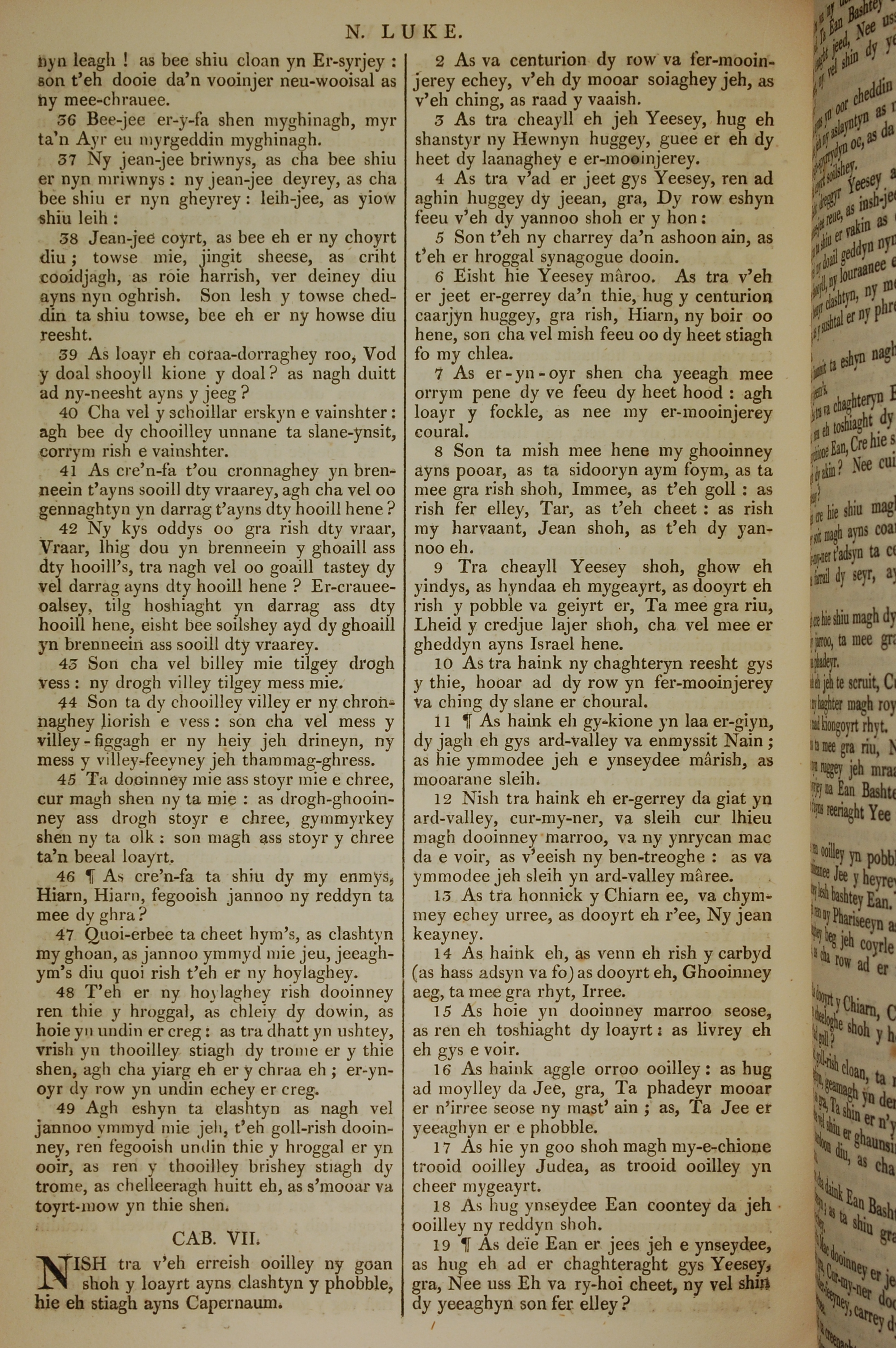 1819年曼島語聖經 路加福音 6 章 36 節到 7 章 19 節