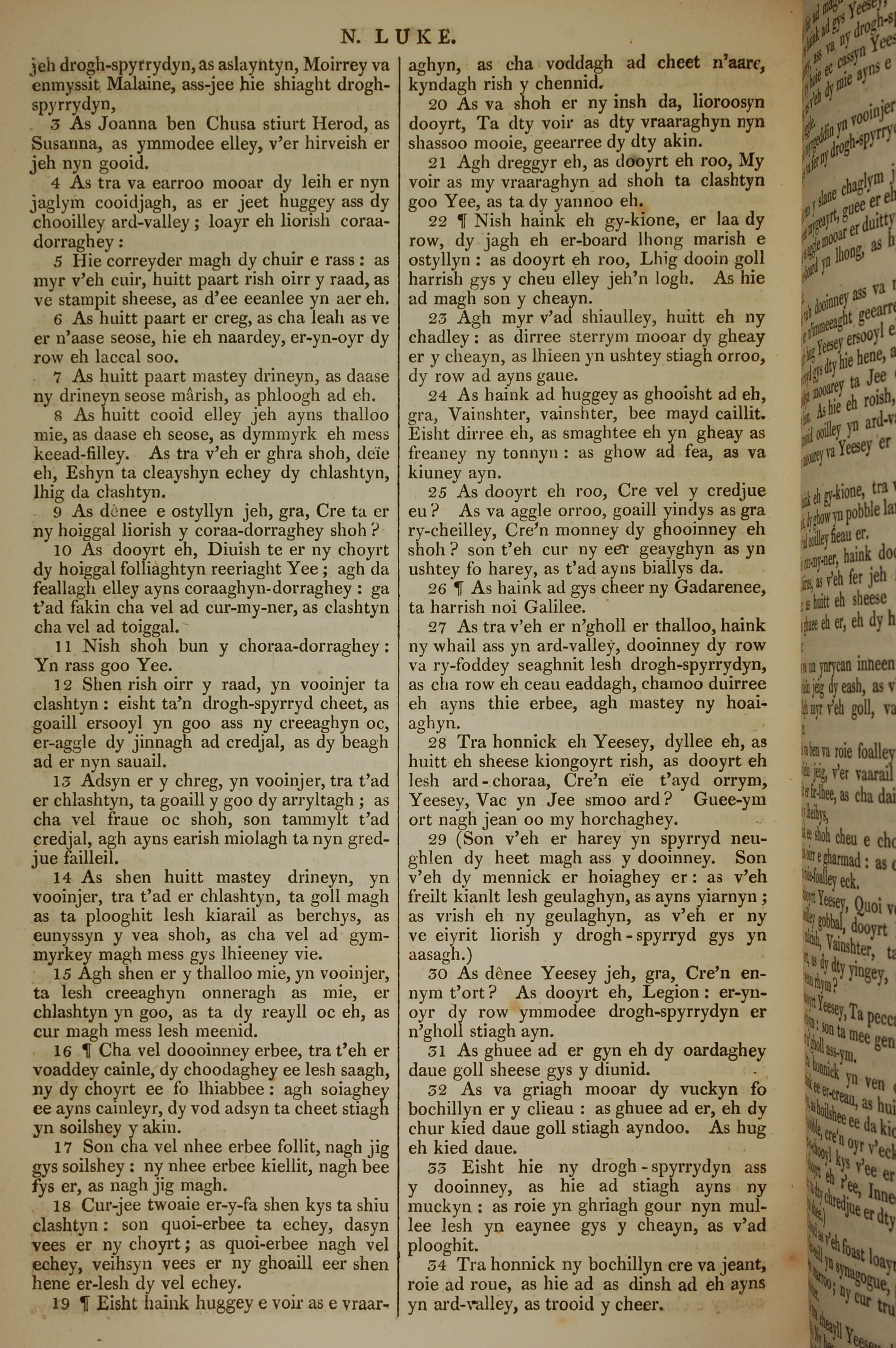 1819年曼島語聖經 路加福音 8 章 3 節到 8 章 34 節