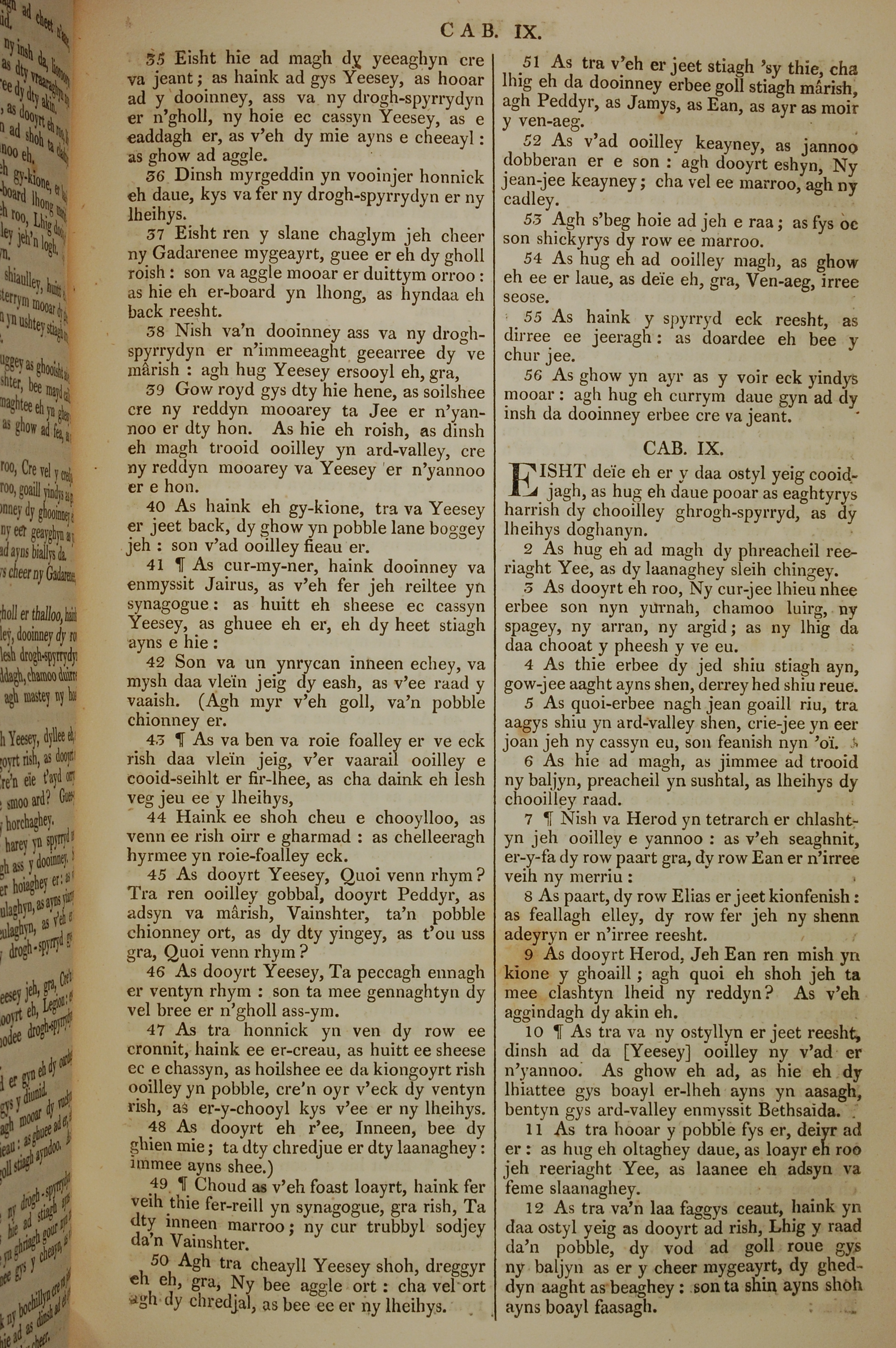 1819年曼島語聖經 路加福音 8 章 35 節到 9 章 12 節