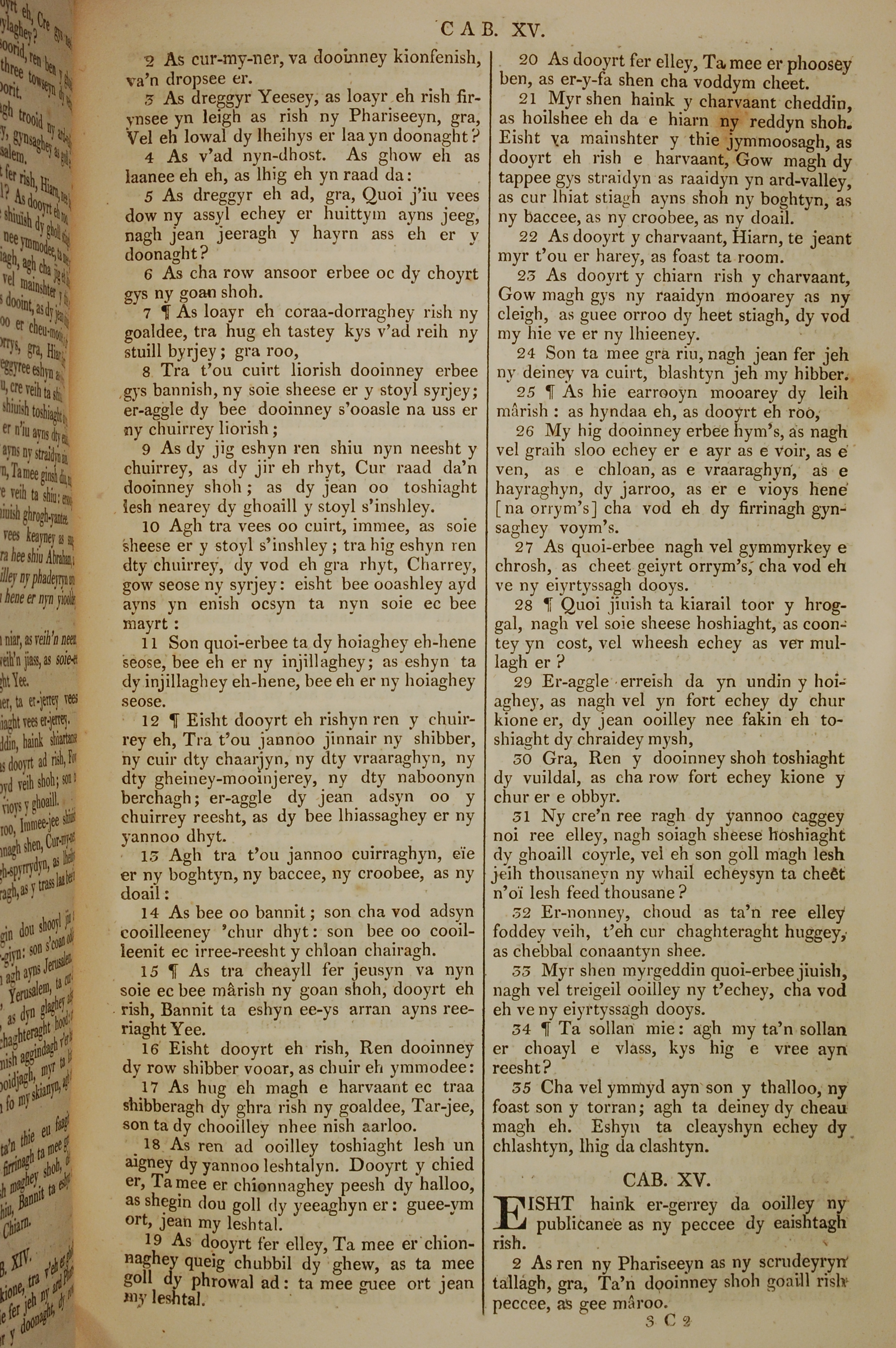 1819年曼島語聖經 路加福音 14 章 2 節到 15 章 2 節