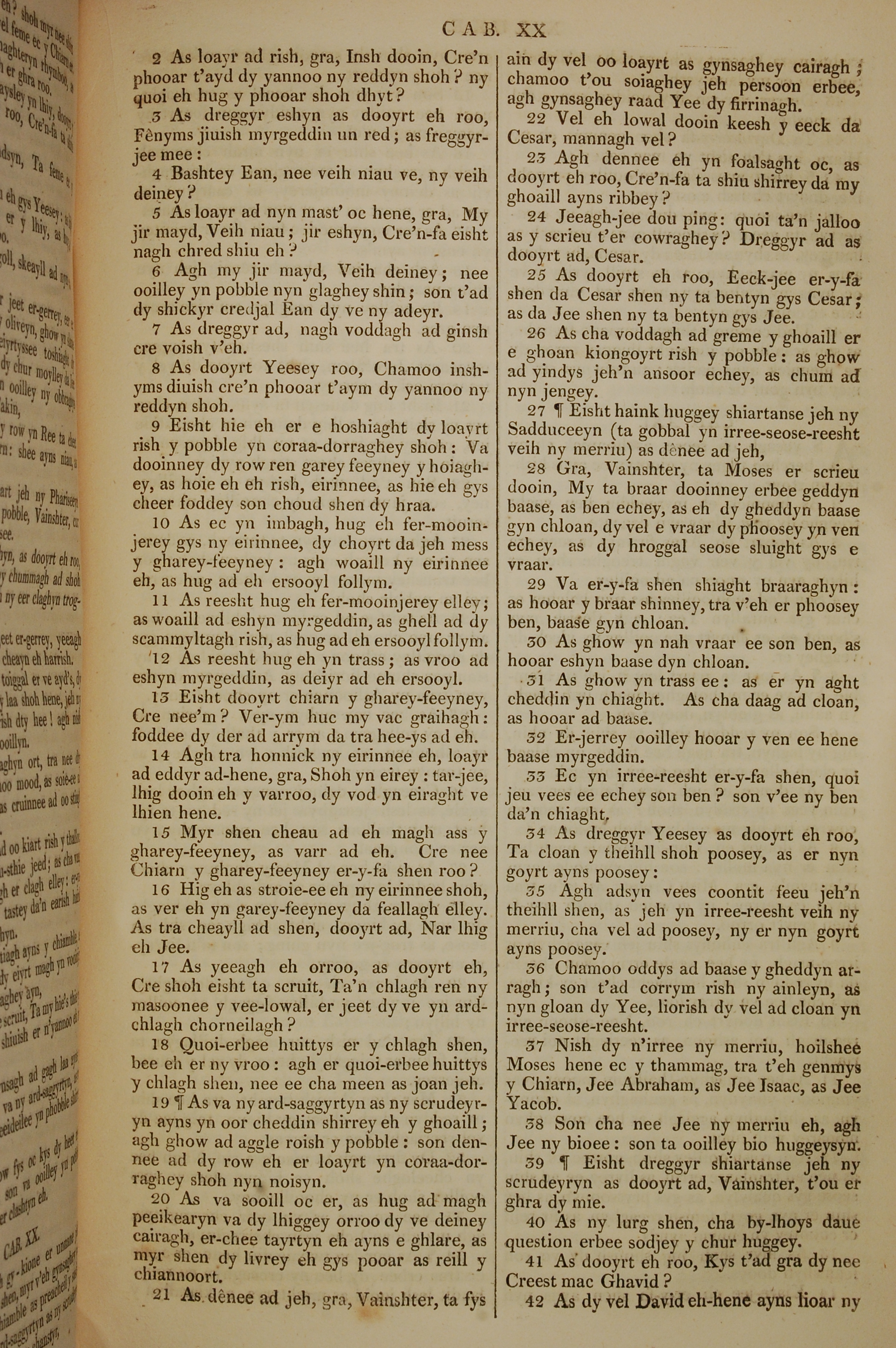 1819年曼島語聖經 路加福音 20 章 2 節到 20 章 42 節