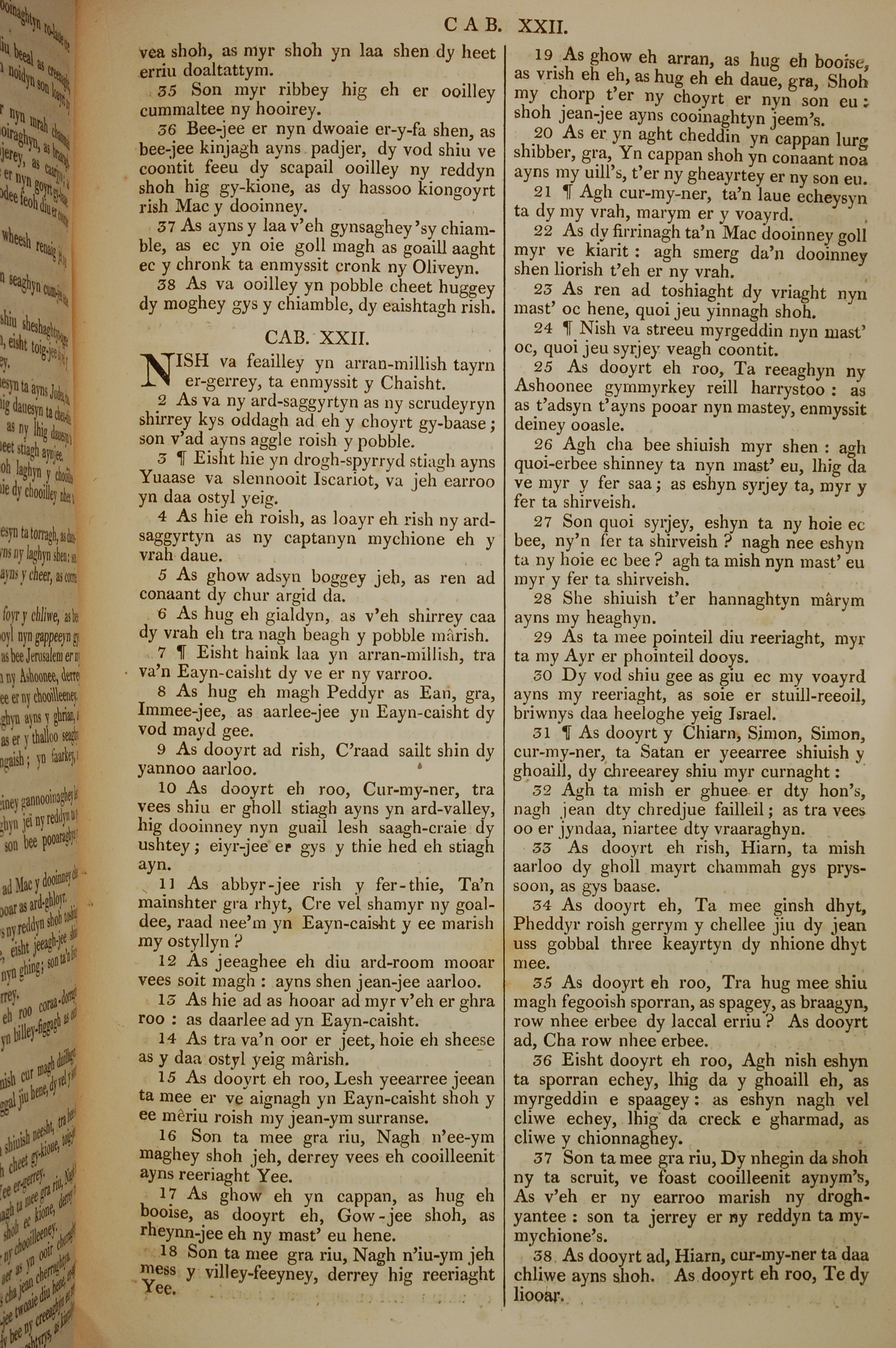 1819年曼島語聖經 路加福音 21 章 35 節到 22 章 38 節