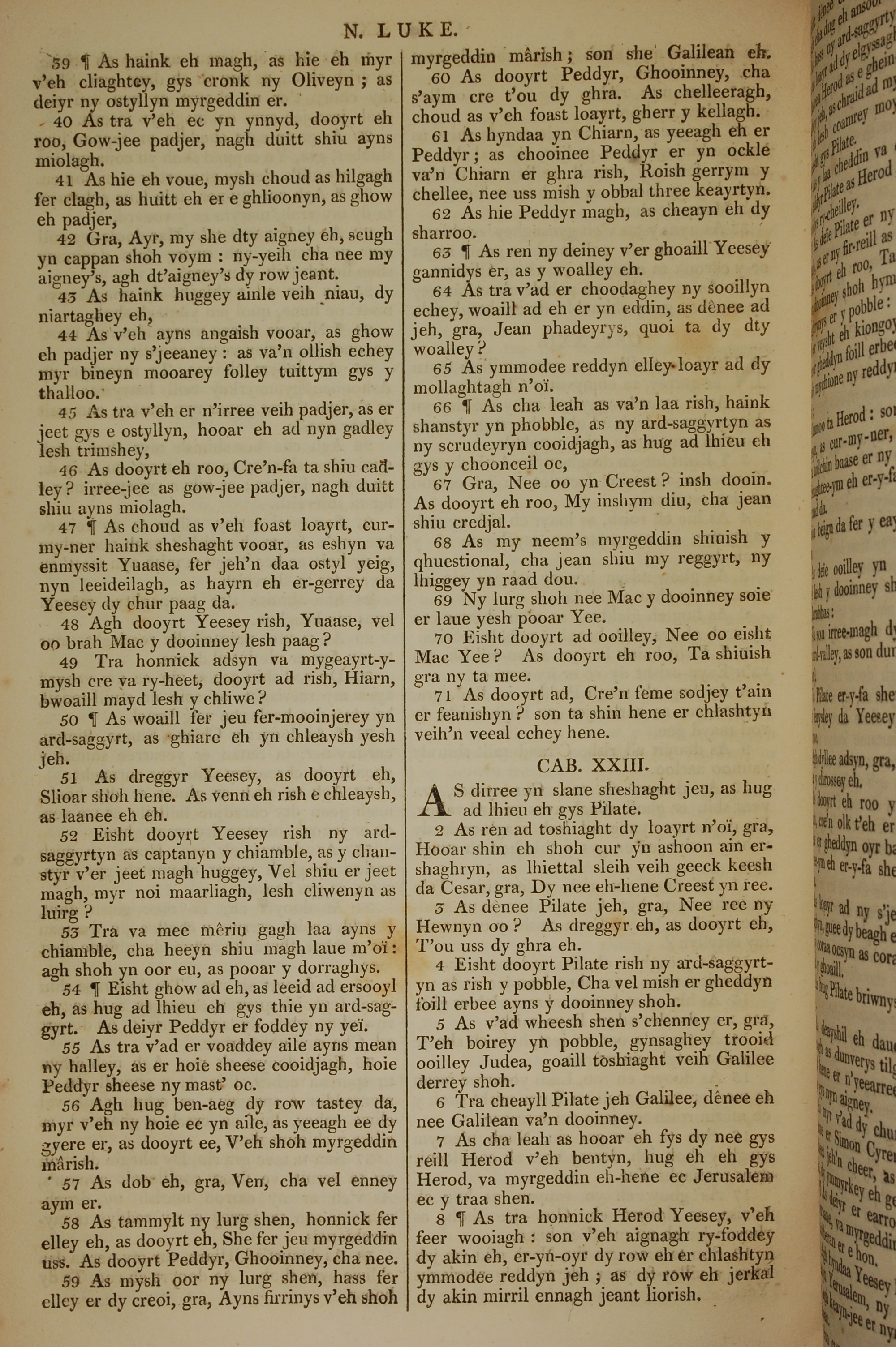 1819年曼島語聖經 路加福音 22 章 39 節到 23 章 8 節