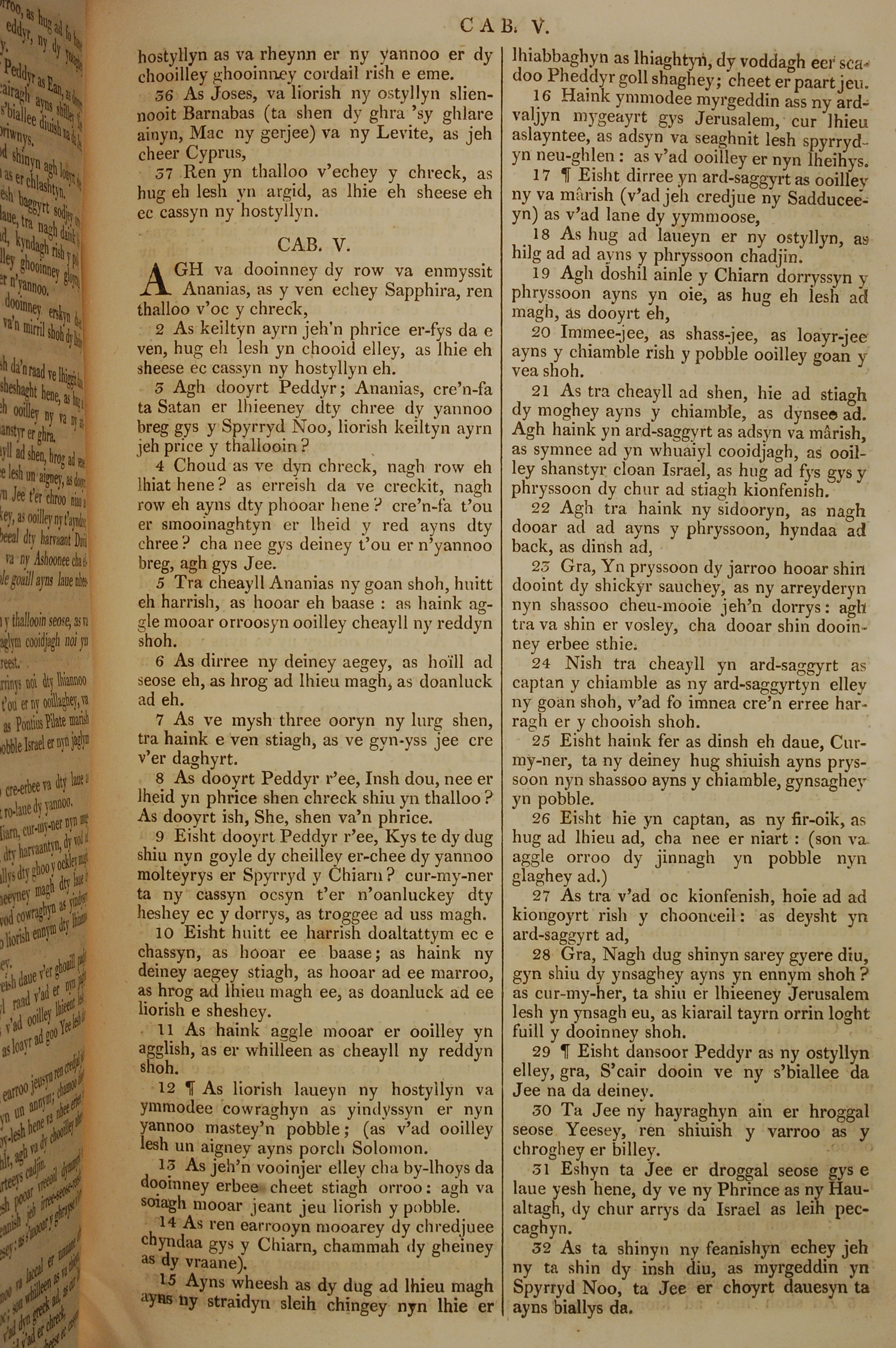 1819年曼島語聖經 使徒行傳 4 章 36 節到 5 章 32 節