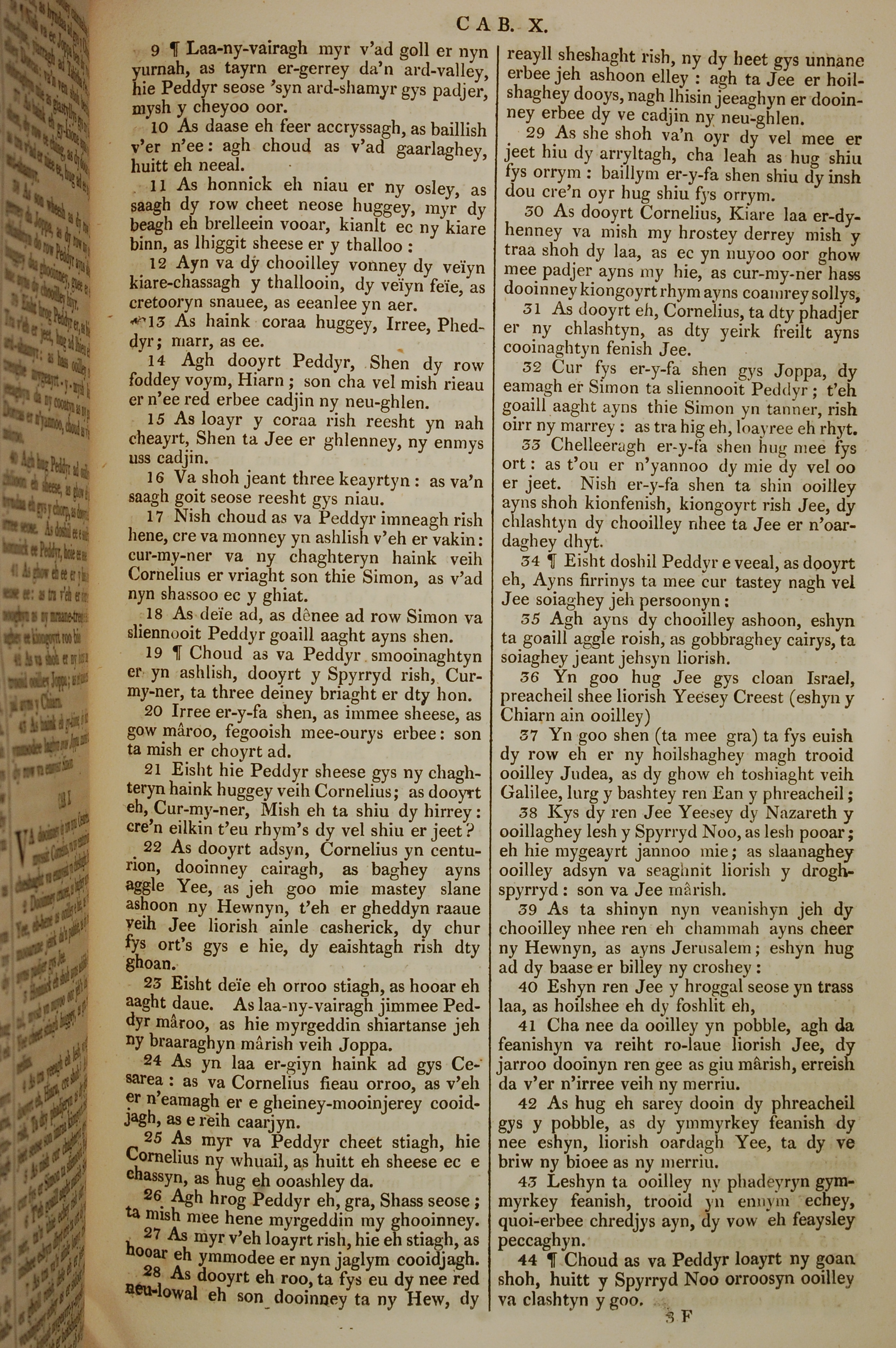 1819年曼島語聖經 使徒行傳 10 章 9 節到 10 章 44 節