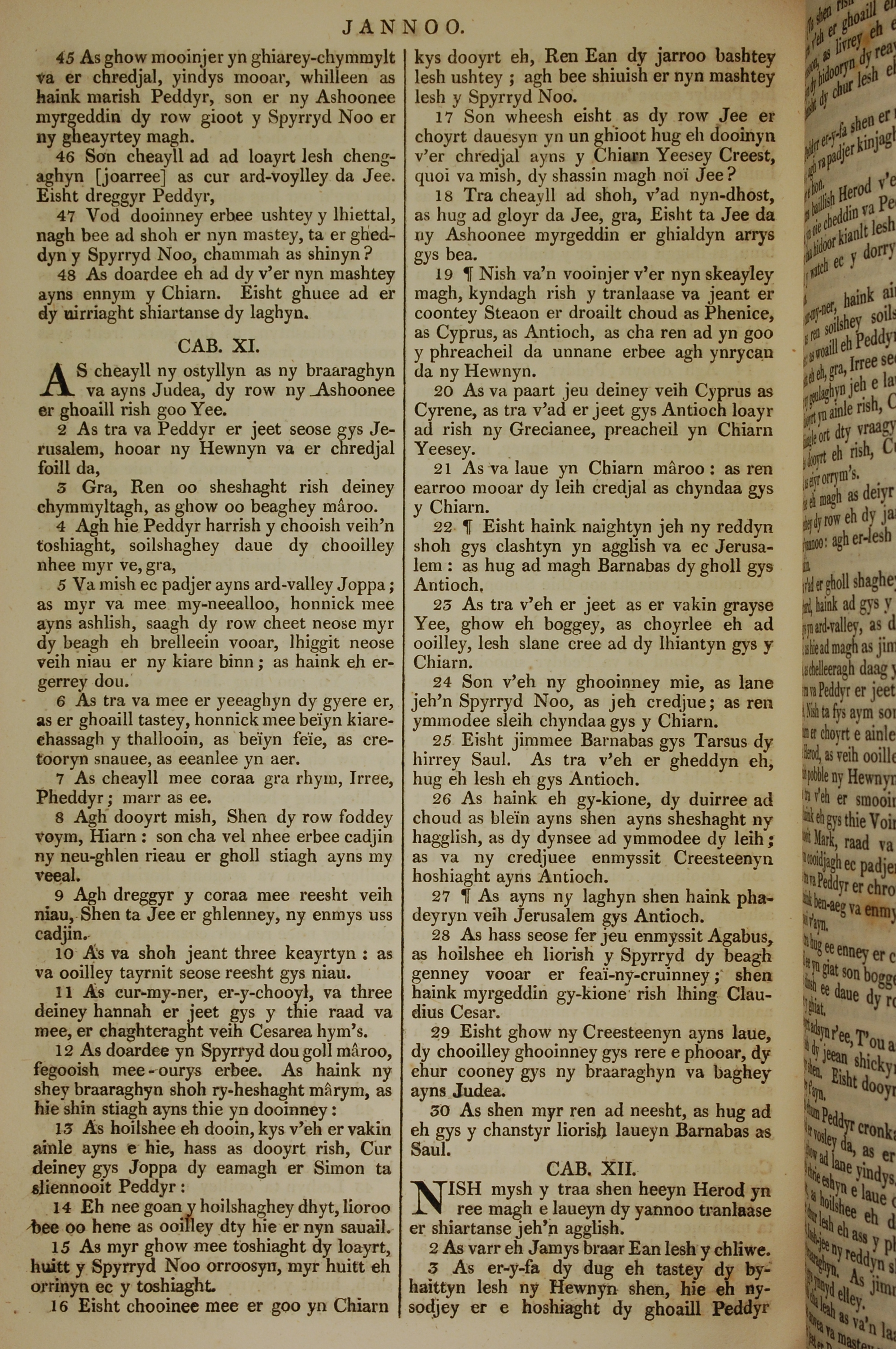 1819年曼島語聖經 使徒行傳 10 章 45 節到 12 章 3 節
