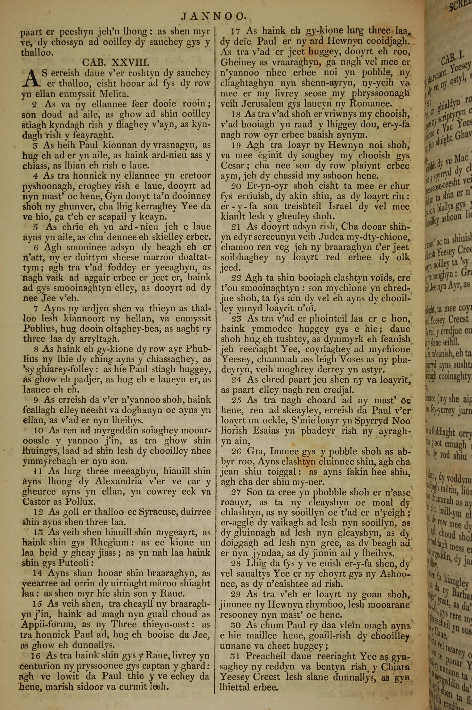 1819年曼島語聖經 使徒行傳 28 章 1 節到 28 章 31 節