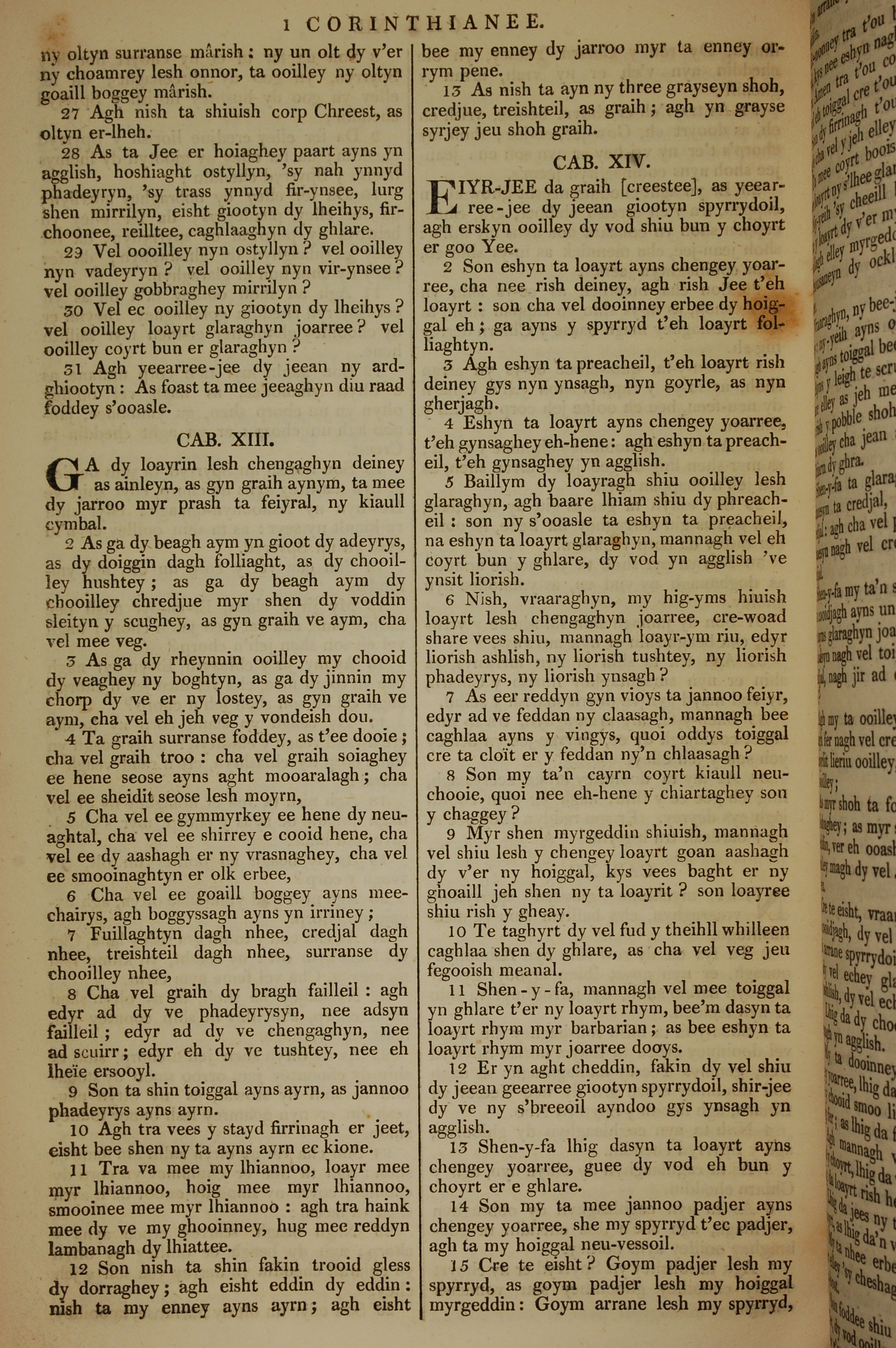 1819年曼島語聖經 哥林多前書 12 章 27 節到 14 章 15 節