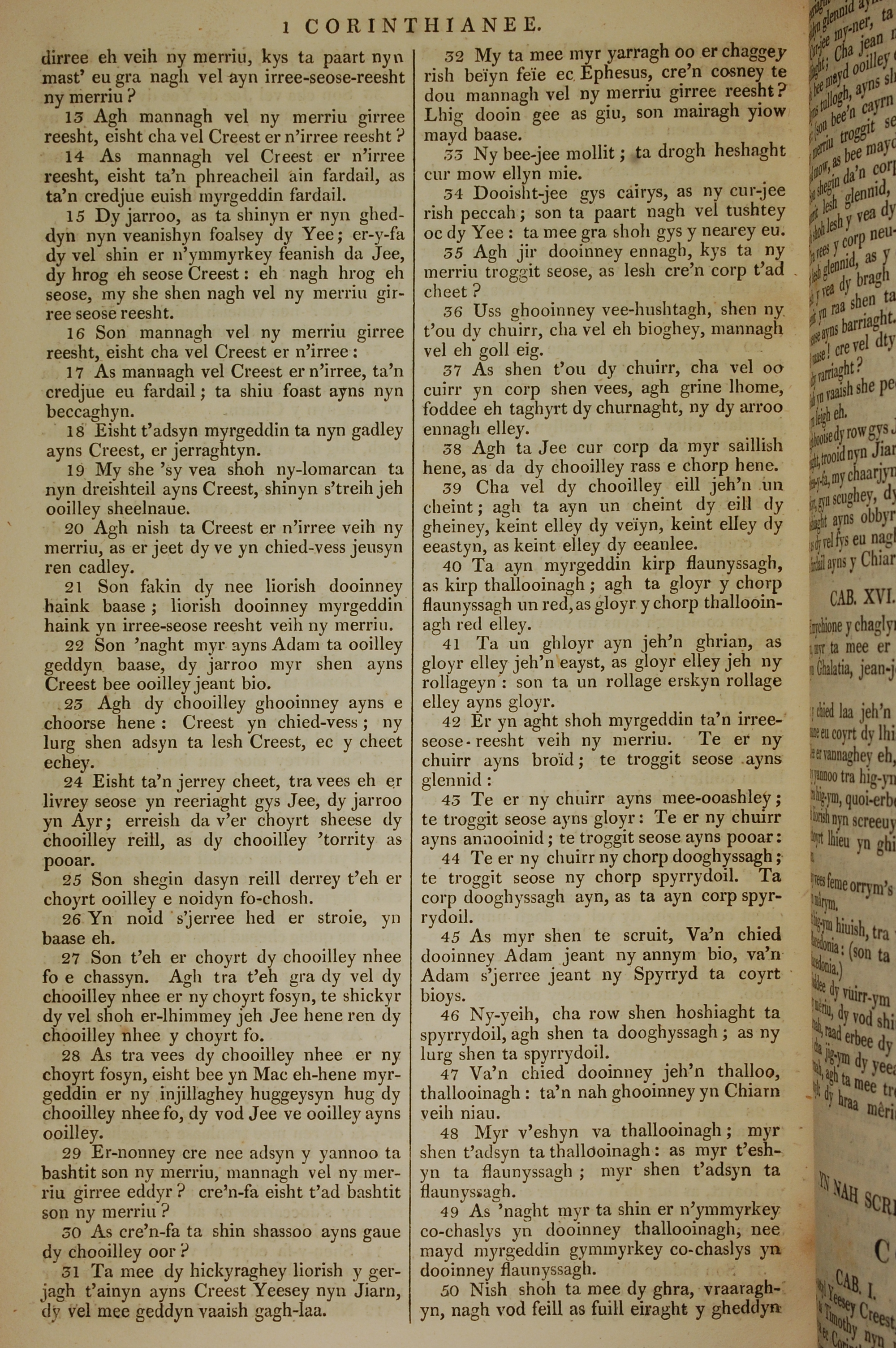 1819年曼島語聖經 哥林多前書 15 章 13 節到 15 章 50 節