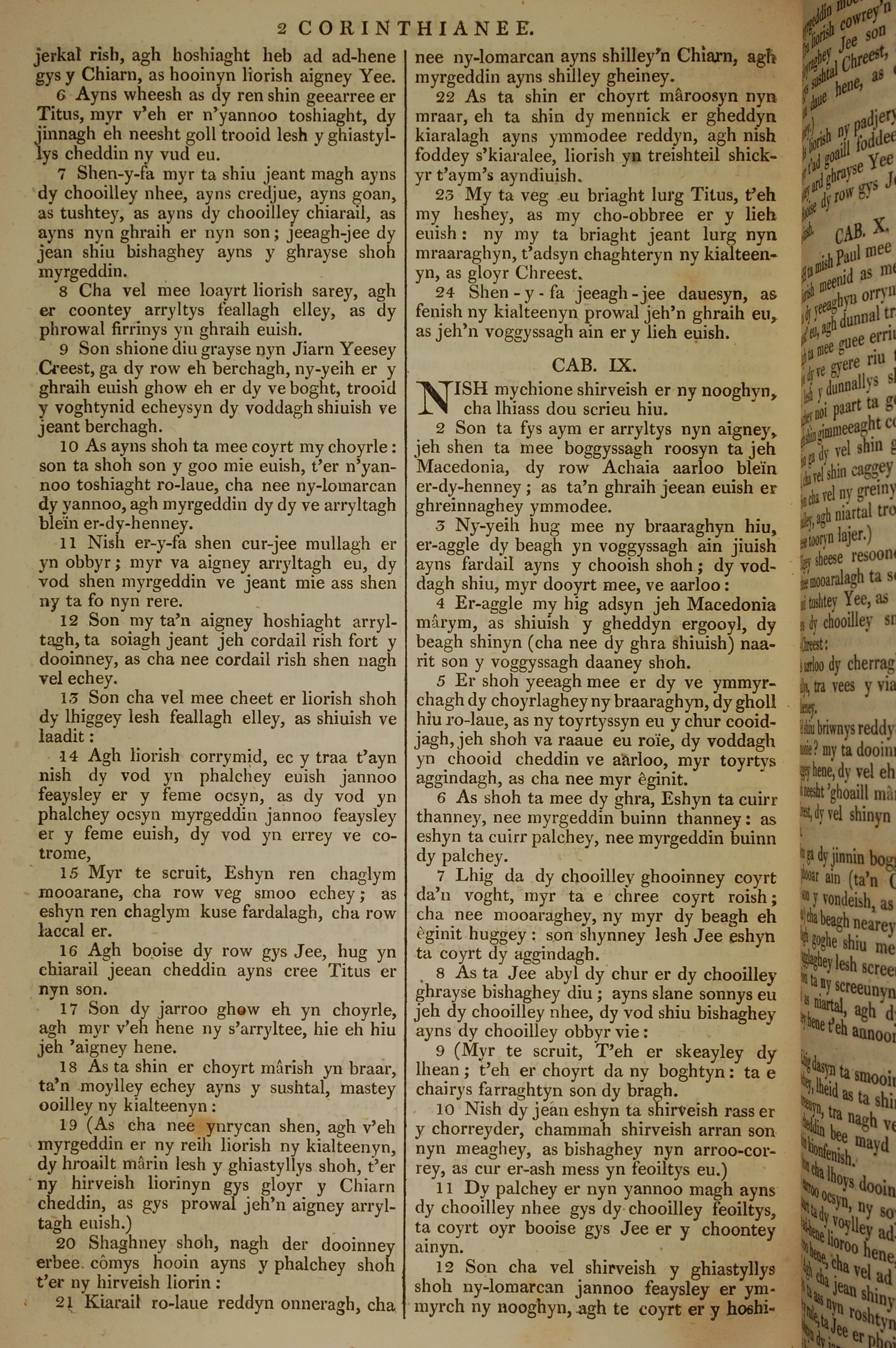 1819年曼島語聖經 哥林多後書 8 章 6 節到 9 章 12 節