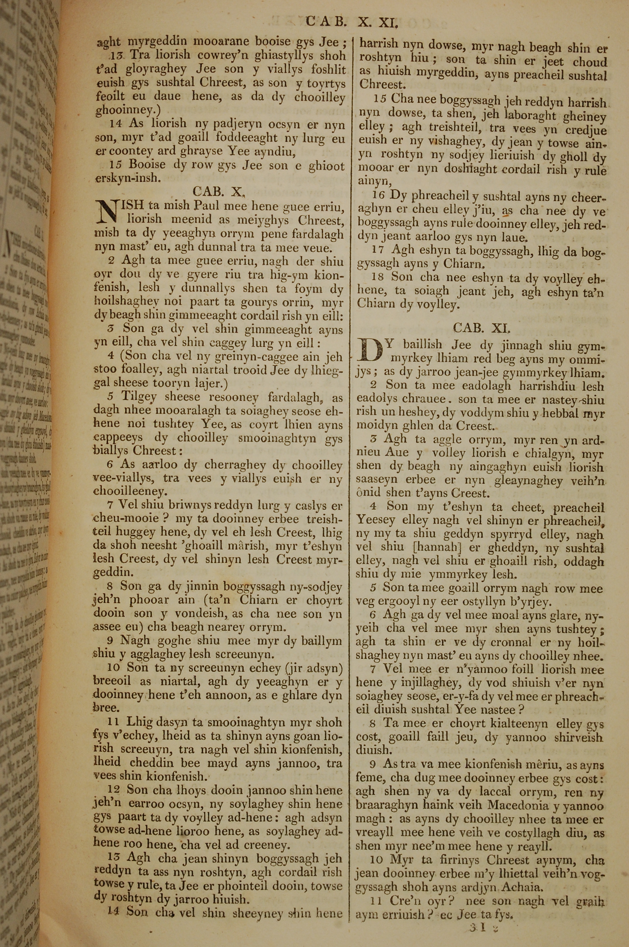 1819年曼島語聖經 哥林多後書 9 章 13 節到 11 章 11 節