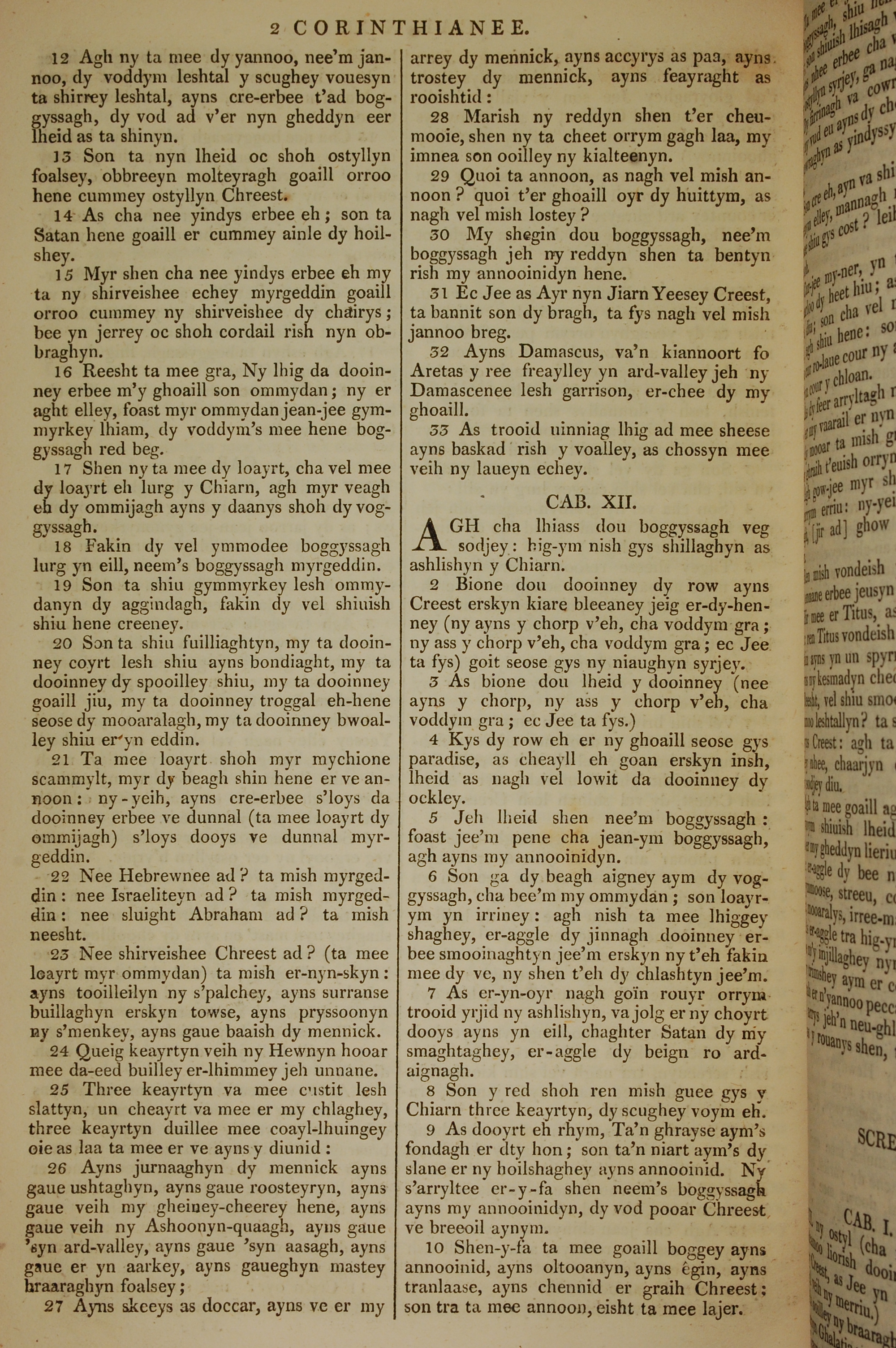1819年曼島語聖經 哥林多後書 11 章 12 節到 12 章 10 節