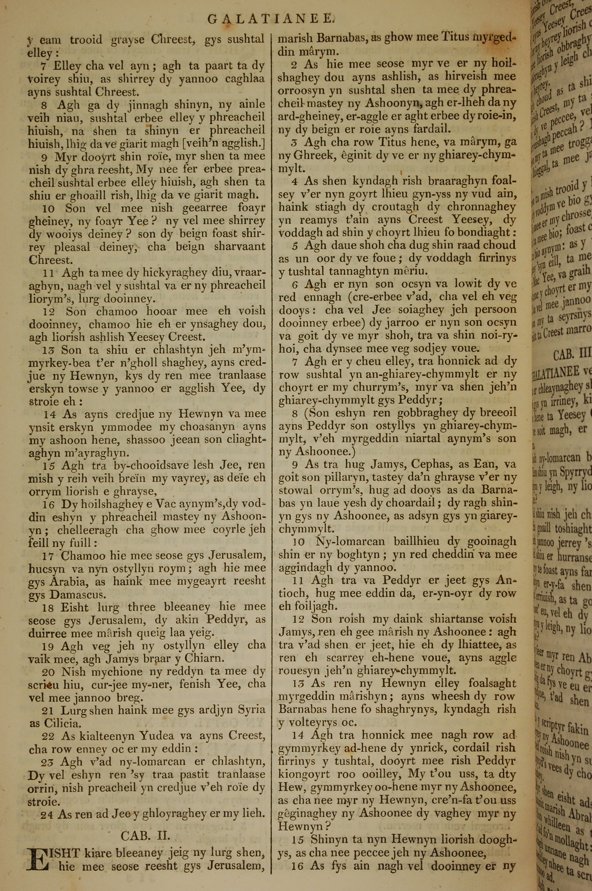 1819年曼島語聖經 加拉太書 1 章 7 節到 2 章 16 節